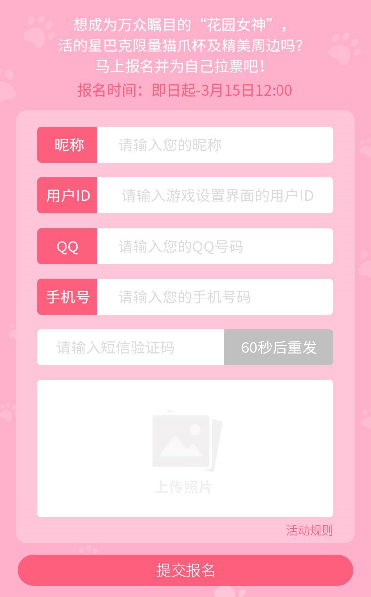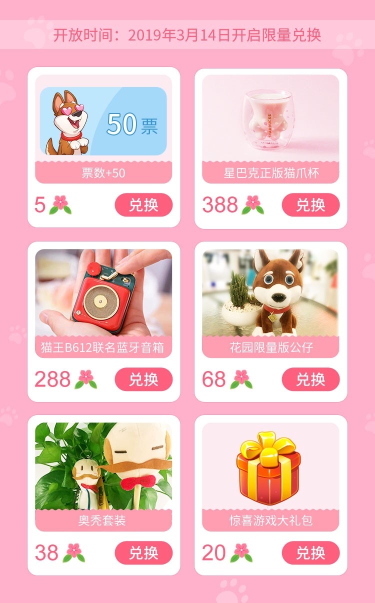 阳春三月,又到一年一度的“三八”女神狂欢日。今天,由《梦幻花园》手游独家举办的“花园女神节”活动正式开启,晒美照即可赢取星巴克猫爪杯等精美礼品,花园上演实力宠爱!如何玩转本次“花园女神节”,下面一起来看看吧。 活动时间:即日起—2019年3月15日 参与方式:① 微信公众号搜索“梦幻花园正版手游”,点击“女神节”进入报名;② 微博搜索“梦幻花园奥斯汀管家”,在置顶微博扫码进入报名。 规则说明: 1. 上传珍藏美照,报名女神评选 即日起至2019年3月15日,各位小主点击下方链接进入活动页面,填写《梦幻花园》安卓版游戏ID(游戏设置界面-用户ID)、昵称等基本信息,并上传本人美照报名。请注意,可不要上传他人的照片,会被无情地取消资格的哦! 2. 呼朋唤友助力,竞选花园女神 报名成功的小主们将获得专属女神编号,在投票界面搜索女神编号,每天每人最多可投出3票,最终将按票数的高低评选出“花园人气女神”。 而在活动期间,成功下载安卓版手游并成功注册的新用户,每人将获得6朵樱花。点击“送花按钮”即可为女神送花,悄咪咪说一句,樱花也有大用处哦!快拉上你的闺蜜好友为你投票送花! 3. 樱花商城开放,兑换限量好礼 樱花商城将于2019年3月14日开启,持有樱花的女神可前往商城兑换活动票数、道具礼包、花园精美周边等礼品。划重点:5朵樱花也可兑换票数50张,这是最后的冲刺,快抓紧这个机会反超一波! 4. 花园女神公布,领取萌萌猫爪杯 截至2019年3月15日,届时票数最高前10位玩家获得“花园女神”称号,拿走女神专属礼品!猫爪杯,还有猫王B612联名款蓝牙音箱、各种花园周边福利......各位小主快准备好美照参与吧! |