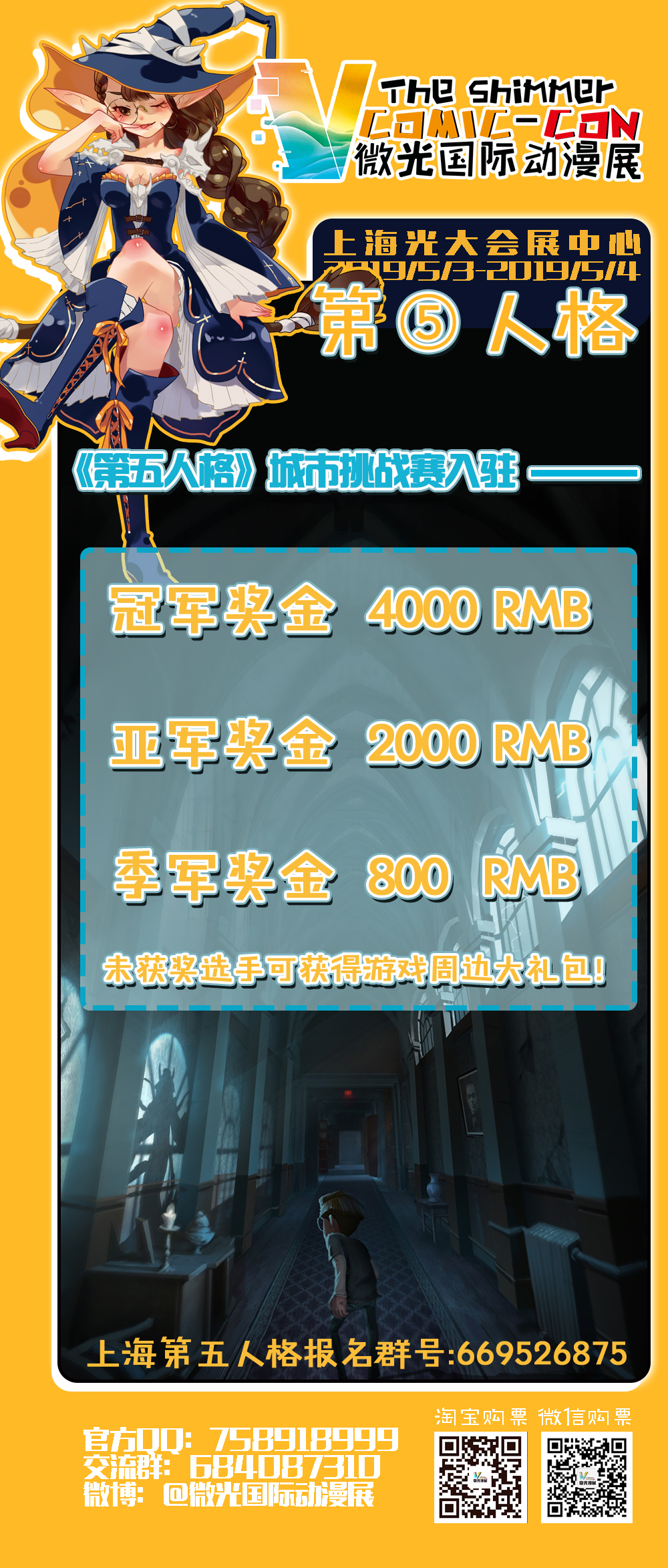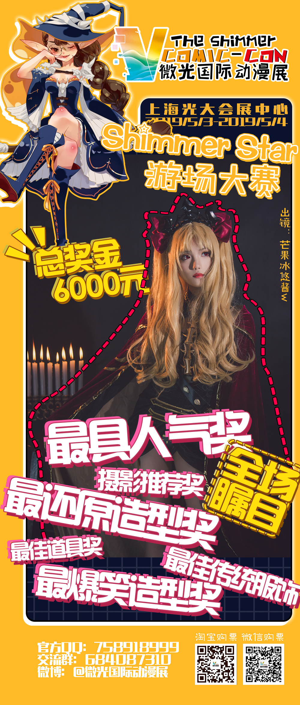 展会时间:2019年5月3-4日 展会地址:上海光大国际会展中心 展会票价:预售60元,现场70元,双日VIP:480元 活动内容介绍:豪华嘉宾阵容、精彩舞台表演、超嗨宅舞快闪、"Shimmer star"游场大赏,cosplay\传统服饰\洛丽塔\主播\摄影自由行,《第五人格》城市挑战赛……更多精彩的活动&丰厚的奖励等你发现! 门票已开售!另设vip、svip票,享受漫展快速通道、周边签售快速通道、舞台专区专座特权,让你近距离应援自己的爱豆!y( ˙?. )耶~ 同时招募活动负责人、npc、票务代理,只要你有自信,想要成为漫展的一份子,为了自己的爱好而努力,快来戳官Q来报名吧!等你呦! 官方QQ:758918999 官方QQ群:684087310 微博:@微光国际动漫展 展会属性:动漫游戏展会 |