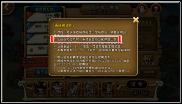 作为海贼王正版手游《航海王启航》中登场时间最长、也是最核心的天梯竞赛模式,通缉榜一直是最受玩家关注的玩法。但是对于萌新玩家来说,有些系统设计很难快速理解,例如“为什么实际战斗的阵容和我编辑的阵容不同”,“为什么系统总是匹配到我打不过的人”等等。今天启航玩家攻略组就为大家解释通缉榜中的常见问题,希望能对萌新玩家有所帮助。 通缉战力限制规则 玩家在通缉模式中设定了新的战术阵容,但是出战之后发现实战的阵容与之前的设计完全不同,因而怀疑遇到了bug。实际上,这是通缉战力限制规则。启航存在对玩家出战阵容的战力审查机制,其思路应该是通过限制玩家使用低战力的人物,从而提升刷分的难度和成本。 (一)战力限制规则的具体设定 从大家的经验中总结,一般公认战力限制的标准如下表格: (二)默认阵容的来源、查看以及影响 ①默认阵容的来源。默认阵容分为两种情况。第一种,当玩家被离线时,系统选择的通常是玩家上一次主动匹配时使用的阵容,第二种就是玩家的历史最高战力阵容。 ②如何查看自己的历史最高战力。有3种方法。 第一种,如果能进入通缉前10名,点击自己的名字,弹出界面中显示的就是你的历史最高战力。 第二种,请朋友在他的好友列表中找到你,点击之后弹出的界面中也会显示你的历史最高战力。 第三种,使用一定受到战力限制规则的阵容开始匹配通缉,进入战斗准备界面后,下图所示的战力就是历史最高战力。 (三)历史最高战力的影响 首先当然是对玩家在通缉中随意使用战术和阵容的限制,其次也会对玩家的巡航难度产生重大影响。很显然,自己战力越高,遇到的对手战力也就越高,难度也就越大。因此,合理地控制自己的战力是非常重要的事情。 通缉匹配规则 连续匹配到同一个或者少数几个玩家,这是萌新常见的牢骚。事实上,连续匹配并非重点,或许连续战败失分才是萌新抱怨通缉匹配规则的核心所在吧。要规避这种情况的发生,核心还是了解通缉匹配的规则机制。 通缉匹配规则,分为实时匹配和离线匹配两个部分。 (一)实时匹配 简单地说,假设有玩家A与B,当A点击“寻找对手”后,即进入实时匹配模式,如果此时恰好B在30秒内也点击了“寻找对手”,则A和B即有可能会被匹配在一起,进入战斗。这就是实时匹配。 ①实时匹配的条件。首先,双方点击“寻找对手”的时间一般相差在30秒内(超过30秒后即进入离线匹配模式)。其次,AB分差要在一定范围之内才会遇到。 需要说明的是,实时匹配的规则只计算分差和时差,而与战力和等级高低无关。 ②为什么会连续遇到。被匹配进入战斗后,AB通常都会关注战斗动画直到结束,因为二者所观看的的实际是同一个战斗动画,时长相同,因而当A回到匹配界面点击“寻找对手”时,B有很高概率也在相近的时间内点击了“寻找对手”,因而就极可能再次相遇甚至连续多次相遇。 ③如何避免连续匹配。AB连续实时匹配的关键在于二者节奏非常相近,因此要避免连续匹配,只要错开节奏就可以了。比如战斗结束后,A等待40秒左右,等B遇敌之后再点击“寻找对手”,即有很高概率错开节奏,不再遇到B。当然,最稳妥的办法就是暂停匹配,过段时间再来打。 (二)离线匹配 当实时匹配超过30秒仍没有遇敌时,即会转入离线匹配模式,由系统根据一定条件随机指定1名对手进入战斗。这就是离线匹配。 ①离线匹配的条件。仍然假设玩家A点击“寻找对手”进入实时匹配状态,30秒内未能达成匹配,则系统会以A的排名为中心,在前5名和后4名中,随机挑选1人作为对手,并读取该对手上一次实时匹配的阵容配置与A进行战斗。离线匹配只与排名和目标是否处于保护时间有关,与匹配双方的分差、战力、以及等级之类无关。 ②为什么会连续遇到。这一般是因为A的离线匹配范围中,只剩下B并未处于保护时间内,因此看似离线范围很大,但实际上只剩下B一个目标,在无法战胜B的情况下,当然会连续遇到。 ③如何避免连续匹配。很简单,当连续匹配到同一个玩家时,只需要停下来,等1小时,即可度过其余可离线目标的保护时间,再次拓宽遇敌的可能性。 在《航海王起航》玩法日益多样化之后,玩家的兴趣分布被大大分散。特别是超新星挑战赛和王下七武海争霸赛模式的出现,为各区的霸主玩家提供了更高层次的竞争舞台,这实际上削弱了通缉模式的核心地位。当然,对于普通玩家尤其萌新来说,超新星和七武海都太遥远,通缉依然无可取代,但是把通缉的排名和胜负输赢看的太重也是没必要的。前期有限度地隐忍,集中资源以最快速度养出合适的强力R卡,或许才是真正的启航王道之路! 启航玩家攻略组 |