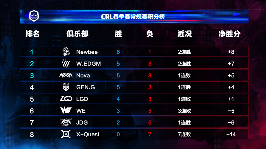 新军凶猛王者依旧,最强赛区名不虚传!自3月22日于上海全面开战,皇室战争职业联赛2019年中国大陆赛区春季赛已赛程过半。积分榜上,新军Newbee强势领跑,Nova、W.EDGM、GEN.G上赛季冠亚季军也位列前四,新军豪门齐开花,季后赛争夺愈发激烈! CRL春季赛赛程过半 6胜1负!这支新军有点强 2018赛季,Nova代表中国大陆赛区在东京封王,加冕首届CRL全球总冠军。2019新赛季,CRL中国大陆赛区依旧有8支队伍参与角逐——Gen.G、JDG、LGD、Newbee、Nova、WE、W.EDGM、X-Quest肩负捍卫最强赛区荣耀的重任。而作为一支刚刚加入CRL的新军, Newbee战队在半程过后6胜1负强势领跑,展现出这支豪门之师的冠军底蕴。 春季赛半程积分榜 今年1月底,Newbee正式官宣加入CRL,只用了短短一个半月的时间,就围绕教练暮日苍穹打造出了一支王者之师——挖来W.EDGM实力派选手潇洒,迎回退役一季的斑斑,发掘潜力新秀陈和颖子猪,再请来曾经天梯登顶的豆豆出山,以老带新为建队思路的Newbee在春季赛大放异彩。自常规赛首周两连胜开局坐上积分榜第一,Newbee就未曾再让榜首旁落他人。半程7场比赛豪取6胜1负,4次KOF胜出展现出全队强大的综合实力和抗压能力,除了鏖战5盘惜败Nova一场,Newbee表现堪称完美。 Newbee超级新人王豆豆 联盟第一必有大将坐镇,Newbee在春季赛一飞冲天,超级新人豆豆功不可没。半程过后,豆豆1V1七战七胜书写不败神话,KOF同样4胜1负胜率逆天,绝活镜像锅炉“薛涛套”成为让所有对手头疼的难题,豆豆的光芒甚至超过了力量哥、单王一众顶级巨星,成为新赛季最大的惊喜,也是常规赛MVP的最热门人选。 除了豆豆耀眼的光芒,Newbee高居榜首之位同样离不开教练暮日苍穹对全队的调教。暮指导曾不止一次表示,Newbee全队每天的训练时间达到12-14个小时,几乎除了吃饭睡觉全部在练习。电子竞技胜者为王,而成绩和努力又总是相辅相成,近乎“疯狂”的训练量,就是Newbee以新军身份登顶的秘密。 战国时代!季后赛白热之争 除了Newbee一骑绝尘,CRL正在从2018赛季的Nova一家独大,转变为百家争鸣的战国时代。半程积分榜上,上届冠亚季军Nova、W.EDGM、GEN.G同为5胜3负位列前四,三支老牌劲旅仅有小分上的细微差距。而鸣圣治下的LGD在少赛一场的情况下排名第五,在季后赛门票争夺战中并未掉队。WE、JDG、XQ虽然战绩落后,但依旧保持着进军季后赛的可能性,三队需要在下半赛全力以赴、力拼奇迹。 CRL正式进入战国时代 战队实力的无限接近和替补规则的引入,让新赛季的激烈性和观赏性都再上台阶,半程5周30场比赛,有14场都打到了KOF决胜盘。接近五成的KOF率就是联赛激烈程度的一个缩影,Nova的力量哥、WE的太阳、Newbee新人颖子猪都曾上演一穿三的戏码。除了观赏性、刺激性升级,新赛季的话题度也是空前——鸣圣、韩大师双双复出执掌教鞭,绝代双骄从台前战到幕后;力量哥、Au两位MVP正面对话,一决谁是王中之王;豆豆、糯米糍、久宝宝强势崛起,挑战力量哥、单王等超级巨星的王权;洪国建和水水登台解说,带来连篇“骚话”和丰富的弹幕文化……这所有的一切,都标志着CRL的成熟与发展。 除了战队、选手和教练们的精彩表现,CRL新赛季在舞台包装、官网建设、官方自媒体方面都全面升级。CRL中国赛区官网(crlcn.com)已经全新改版,新增加皇豆竞猜功能,大大增强观众的观赛参与感,参与竞猜赢取皇豆即可兑换官方周边好礼。CRL官方微博(@CRL皇室战争职业联赛)也在新赛季正式上线,第一时间更新热辣赛事资讯。官方出品的《没这么简单》等精品栏目,也收获了一片好评之声。 全球开战!CN CR剑指卫冕 CRL中国大陆赛区春季赛常规赛本周末正式开启下半程的争夺,季后赛门票之争进入白热化阶段,每周五、六、日下午6点准时开战,比赛将在虎牙、斗鱼等8大直播平台进行同步直播。季后赛将于5月31日开战,最后的冠亚军决赛则将在6月8日震撼上演。春季赛冠亚季军,还将代表中国参加2019西安WCG皇室战争团队赛项目争夺,再次捍卫CN CR的荣耀! 中国赛区剑指卫冕 2019赛季,CRL全球体系将整合为三大赛区,除了中国大陆赛区和亚洲赛区保持不变外,北美、拉美和欧洲赛区合并为西方赛区。目前,除了中国大陆赛区赛程过半,CRL亚洲赛区也已在4月25日开战,韩国、日本和东南亚的CR高手们齐聚一堂,曾为Nova三冠王立下汗马功劳的Legend就已转投东南亚KIX战队。西方赛区则要在5月底才会全面拉开战幕,全球总决赛目前还没有确切的消息放出,但按照往年惯例会在年底进行。 2018赛季Nova东京封王,让CN CR登顶世界之巅!全新的2019赛季,Gen.G、JDG、LGD、Newbee、Nova、WE、W.EDGM、X-Quest谁能代表中国出征全球?最强赛区能否卫冕世界冠军的荣耀?中国皇室军团又会在WCG上有怎样的表现?让我们拭目以待! |