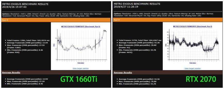 NVIDIA RTX光线追踪技术引起游戏画面的最大改革,去年8月份,NVIDIA发布了最新一代旗舰显卡GeForce RTX 2080 Ti,这一代新显卡最大亮点在于基于Turing架构的GeForce RTX 系列GPU集成实时光线追踪技术(Real-Time Raytracing),这一划时代的成果开启了游戏领域的全新黄金时代。 下图为《战地V》游戏开启/关闭光线追踪技术的画质对比,这一技术让游戏画质有了突飞猛进的提升,只要入手了GeForce RTX20系列显卡的游戏玩家,就能享受到无与伦比的视觉盛宴,毕竟实时光线追踪特效在此前一直是RTX系列显卡的专属。 何为专属?源于RTX系列显卡独有的RT Core和Tensor Core模块,它们都能对实时光线追踪特效提供完整的硬件支持,前者负责实时光线追踪运算,后者则是通过AI人工智能进行深度学习超采样抗锯齿。 不过就在今年的NVIDIA GTC大会上,NVIDIA CEO黄仁勋先生宣布部分GTX显卡也将支持光线追踪技术。但仅限于GeForce GTX1060 6GB以上的帕斯卡架构显卡,以及刚发布不久的基于图灵架构的GeForce GTX1660/Ti显卡。由于GTX系列显卡是没有RT Core模块,到底它是如何实现光线追踪技术的呢? GTX系列显卡在硬件上不支持光线追踪技术,但可通过软件技术来尝鲜光线追踪技术;它通过利用微软的DXR(DirectX RayTracing)图形接口实现,目前在Windows 10能提供。那么到底GTX系列显卡体验光线追踪游戏于RTX系列显卡区别到底有多大,今天我就来为大家一探究竟。 理论测试 使用GeForce RTX 2070显卡和GeForce GTX 1660 Ti显卡安装最新版本Game Ready驱动,使用3DMark为实时光线追踪特效推出的PortRoyal进行基准测试。 从上图成绩能看到,拥有RT Core的GeForce RTX 2070在光线追踪测试上领先同样图灵架构GeForce GTX 1660 Ti幅度高达54%,在帧率表现上GeForce RTX 2070光追表现已到达流畅级别。 测试分别采用三款游戏分别是《地铁:离去》、《战地5》、《古墓丽影:暗影》,这三款游戏现已支持实时光线追踪特效以及DLSS抗锯齿。 测试游戏1.《地铁离去》 地铁离去同样采用Benchmark测试,开启光线追踪极致画质,在画质设置中即使是GTX显卡也能选择DLSS,但运行测试会报错。 从上图的测试成绩能看到GeForce GTX1660Ti的平均帧率只有13,已经处于非常卡顿的状态,最高帧率也没突破30,可见在这款游戏对显卡的光追性能提出了更高的要求。而GeForce RTX2070,平均帧率55、最低帧率超过30,游戏的流畅度有充分的保证。 测试游戏2:《战地5》 战地5画质设置最高,分辨率为1080P,在战地5中GeForce GTX1660Ti能开启DXR,但是依旧是无法开启RTX DLSS的。 同样游戏场景下,GeForce RTX2070有着60帧的出色表现,。而且画面中的纹理更细致,阳光透过树叶缝隙柔和的洒落在枪上,而GeForce GTX1660Ti只有29帧,流畅度远不及前者,洒在枪上的阳光看起来也稍显生硬。 测试游戏3《古墓丽影:暗影》 《古墓丽影:暗影》以及各种灯光在不同人物上的反射。在游戏帧率表现上GeForce RTX 2070能以72帧流畅运行,反观GeForce GTX 1660 Ti,38帧+的表现,还算比较流畅。 从测试结果来看,在开启光线追踪阴影质量最高画质后,GTX1660Ti的平均帧率只有37,而RTX2070的平均帧率高达76! 总结: 想要玩转支持光线追踪画质的游戏,基于图灵架构的RTX20系列显卡依旧是首选。毕竟该系列在实时光线追踪特效上有着RT Core和Tensor Core的硬件级支持,这是它与GeForce GTX 10系列显卡能拉开较大差距的重要原因, GeForce GTX 10系列以上级别显卡依靠的是软件层面进行光线追踪处理(DXR),加上不支持DLSS对其进行优化,运行光线追踪游戏所耗费的资源就更多。 未来支持光线追踪的游戏将越来越多,要以更好的性能体验这些特效带来的逼真游戏画面,就升级GeForce RTX 20系列显卡。 |