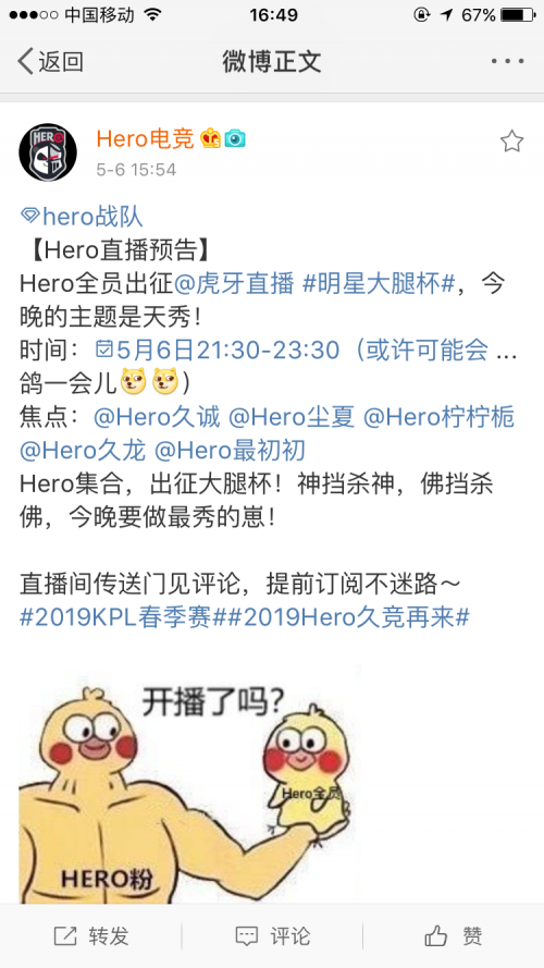 虎牙明星大腿杯:Hero久竞集体翻车 第一中单久诚实力不如主播呆呆?