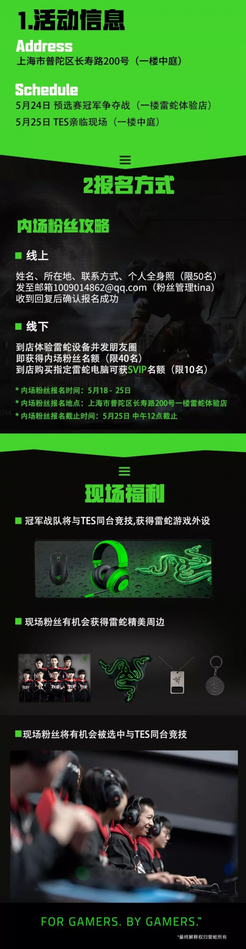 2019年5月20日,中国上海——Razer(雷蛇),全球玩家生活方式潮流品牌(以下简称“雷蛇”,香港联合交易所股份代码︰1337)宣布滔搏电子竞技俱乐部(TOP ESPORTS) 英雄联盟分部现已正式加入Team Razer。Razer雷蛇致力于发展电竞事业的理念与TOP ESPORTS建立国内顶尖俱乐部的理念达成共识,Razer将为英雄联盟分部TES战队全体成员提供最新最专业的电竞装备。选手们将在合作期间帮助Razer开发电竞装备。TES战队麾下的顶尖选手,将能够为Razer的新品研发提供宝贵的意见,满足求胜欲强烈的电竞选手和游戏玩家们对电竞装备的严苛要求。 滔搏电子竞技俱乐部TES现已正式加入Team Razer 滔搏电子竞技俱乐部 (TOP ESPORTS) 是由滔搏运动旗下的电子竞技俱乐部。原名TOP电子竞技俱乐部(英文名TOPSPORTS Gaming,简写为TOP)成立于2017年12月。旗下的英雄联盟分部于2017年12月开始参加英雄联盟赛事,在2018年全国电子竞技大赛上取得亚军,随后在西安举行的2018那德玛西亚杯冬季赛上取得亚军,在2019年LPL春季赛16支队伍中取得了第4名的成绩,将代表LPL赛区参加2019年洲际赛。 2019年5月15号,TOP电子竞技俱乐部(英文名TOPSPORTS Gaming,简写为TOP)全面品牌升级,正式更名为滔搏电子竞技俱乐部(英文名TOP ESPORTS,简写为TES)。预祝更名后的TES战队能够在洲际赛和夏季赛取得更好的成绩。 与顶尖电竞选手合作的悠久传统,帮助Razer打造出了诸多在全球玩家中都颇受欢迎的游戏键盘、鼠标、耳麦等游戏装备。包括光轴机械键盘——Razer Huntsman猎魂光蛛系列;拥有16000DPI和幻彩灯带的顶级游戏鼠标——Razer Mamba Elite曼巴眼镜蛇精英版;以及为电子竞技量身打造的耳麦Razer Kraken TE北海巨妖竞技版,均为Razer和顶尖职业电竞选手共同打造。Razer始终坚持创立之始的信条——始于玩家,赋予玩家。 在本周六5月25日,我们将举行雷蛇灵刃新品体验会的活动,届时在现场我们将邀请粉丝上台,获得与TES战队同台竞技的机会。现场更有大量雷蛇精美周边礼品,活动报名详情如下: 关于Razer(雷蛇) Razer?(雷蛇)是全球玩家生活方式潮流品牌。 Razer三头蛇徽标是全球游戏及电竞领域最广为人知的LOGO之一。粉丝遍布各大洲的Razer设计并打造了全球最大的专为玩家提供硬件、软件和服务的一体化生态系统。 屡获殊荣的Razer硬件产品包括高性能游戏外设、Razer Blade灵刃系列游戏笔记本电脑和广受欢迎的手机Razer Phone。 Razer软件平台拥有超过6,000万名注册用户,包括物联网平台Razer Synapse(雷云),RGB灯光技术系统Razer Chroma(幻彩技术)以及游戏优化与启动软件Razer Cortex(雷游)。 Razer服务体系包括Razer Gold虚拟信用积分服务,这是全球最大的为玩家打造的虚拟信用服务之一。 Razer Pay是专为年轻人及千禧一代而设的电子钱包。 Razer创立于2005年,总部设在旧金山和新加坡,Razer在全球各地共设18个办事机构,在美国、欧洲和中国均被公认为是领先的游戏玩家品牌。Razer现已在香港证券交易所上市(证券代码:1337)。 关于滔搏电子竞技俱乐部(TOP ESPORTS) 滔搏电子竞技俱乐部前身为DAN电子竞技俱乐部,成立与2015年,创建伊始俱乐部旗下有两支英雄联盟队伍征战英雄联盟LSPL联赛。 2017年初两支队伍进行整改,合并为一支队伍并改名为DAN战队,在引入多名优秀的队员与教练后,目标冲击LPL。 2017年4月21日以LSPL季军身份参加2017LPL春季赛升降级赛,成功击败对手成为史上第一支也是最后一支通过升降级赛淘汰原LPL队伍登上LPL舞台的队伍。 2017年12月与新的资方TOPSPORTS滔搏运动合作,俱乐部改名为TOPSPORTS电子竞技俱乐部,队伍简称TOP,继续在LPL征战。 2019年5月15日,俱乐部全面品牌升级,由TOP电子竞技俱乐部(英文名TOPSPORTS Gaming,简写为TOP),正式更名为滔搏电子竞技俱乐部(英文名TOP ESPORTS,简写为TES)。 |