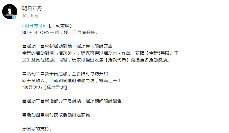 全神秘干员造访,《明日方舟》全服活动“Side Story”第一期即将开启