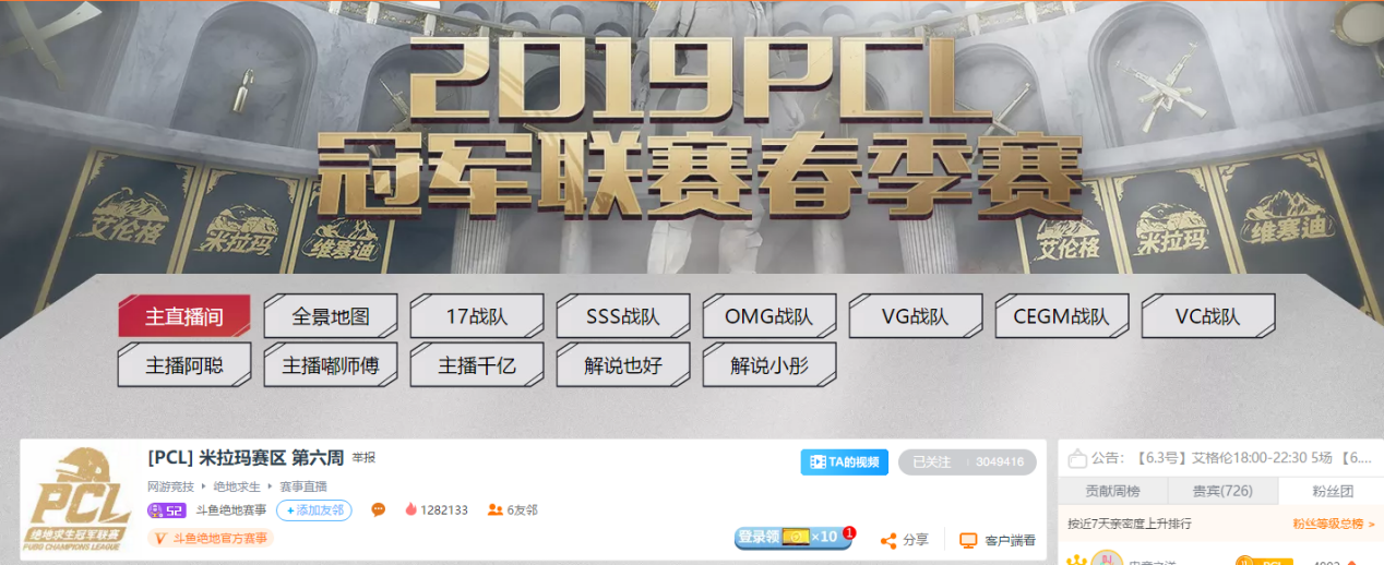 首届PCL春季赛即将迎来最后一个周决赛,在本周周中赛上,作为夺冠大热的VC战队并未晋级最后一周的周决赛,这就给了众多职业战队争冠的机会。斗鱼签约战队17战队发挥稳定,和JTG携手成为艾伦格赛区最有希望冲击联赛第一梯队的队伍。另外,尽管VG战队并没有进入周决赛,但联赛第三的成绩,足以说明这支队伍的实力。除此之外,其他赛区晋级队伍同样对于国际赛名额虎视眈眈。斗鱼将为PUBG粉丝带来这场PCL冠军联赛的大结局。 未来可期!双周冠或助VC斩获首个PCL冠军 作为拿下两个周决赛的职业战队,斗鱼签约战队VC极有可能在PCL冠军联赛上,拿下他们的首个冠军,并代表中国出征国际赛场。回想赛季初VC斩获的第一个周决赛冠军,惊险程度不亚于虎口拔牙。在前有FPX战队围追堵截,后有斗鱼签约战队OMG的穷追不舍。最终VC战队在最终局仅剩独狼的情况下,拿到第二的名次,帮助VC战队成功夺冠,这也是PCL赛场上的首个周冠军。 沉寂数周后,VC战队以一分之差的优势夺冠,站在舞台上的队员更是泪洒当场,很多隔着屏幕观赛的观众也被选手所感动,这或许就是竞技比赛最美好的一面。在强手如林的PCL赛场上,作为一支新兴战队,VC表现出来的战术素养不亚于国内强队。在17、OMG、FPX、4AM等豪强中脱颖而出,VC将他们的对冠军的渴望转化为了赛场上一次次的将对手淘汰。未来可期或许是对这群小伙子们最好的评价,若VC最终夺冠,他们将出现在PGC全球总决赛的舞台上,那时的他们将会面对全世界最高水平的战队的考验,无论最终结果如何,但行好事莫问前程,是这支年轻战队当下最重要的事。 多视角观战+实时存活!“黑科技”助力斗鱼优化观赛体验 在此次2019PCL比赛中,斗鱼直播采用目前国际绝地求生比赛中常见的多视角观战模式。这于不同观赛需求的粉丝来说,无疑在观赛体验上得到了提升。在支持喜爱的战队同时,还将各种周边、鱼丸等粉丝福利收入囊中,对于热爱PUBG赛事的粉丝们可谓一举两得。不仅如此,在斗鱼直播间里,粉丝还可以通过实时存活功能了解赛场动态,第一时间掌握当局比赛局势。这项功能的运用,不仅提升了赛事直播专业度,更是斗鱼平台不断挖掘粉丝需求,优化赛事直播的具体表现。 全面发展!斗鱼多主播致力PUBG赛事领域 众所周知,主播作为直播平台的内容主力输出者,多栖全面发展是主播们未来发展的主要方向。在PCL冠军联赛的舞台,诸多斗鱼主播纷纷加入解说行列,为原本紧张激烈的赛事,添加一份娱乐元素。作为部分非赛事游戏粉丝,通过阿聪、嘟老师以及千亿等娱乐向主播的纯净流解说,在关注赛事的同时,还可以和主播进行竞猜、抽奖等形式的互动。斗鱼向来关注国内PUBG赛事发展,在为赛事提供专业直播资源以及配套设施之外,还在主播资源上予以最大程度的支持。斗鱼直播将与粉丝们一同见证首个PCL总冠军的诞生。 正所谓电子竞技没有空档期,虽然PCL冠军联赛即将迎来尾声,但第七季斗鱼黄金大奖赛即将正式和大家见面。超强阵容、硬核吃鸡,花样玩法,就在6月20日斗鱼276685直播间! |