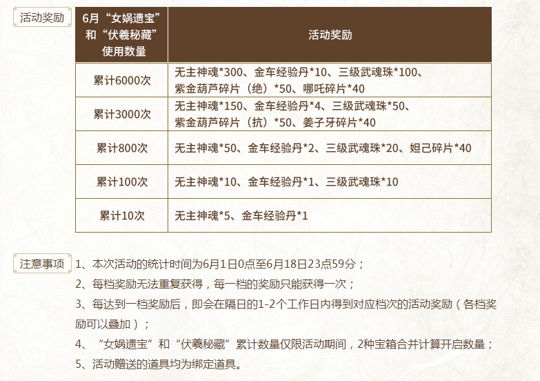 不知不觉,2019年已经过半,《权御天下》618年中盛典已经来袭,与以往不同的是本次游戏活动以畅玩返利为主以表达游戏上线半年来诸位大仙对《权御天下》支持的感谢,话不多说赶紧随资讯君一起来看看都有哪些福利吧。 活动一:616父亲节多倍经验助力 活动大区:神话大区(女娲宫和昆仑虚)/逐鹿大区(牧野之战) 活动时间:6月15日到6月16日 活动内容:活动期间在固定时间内,玩家在野外打怪(灵山战场和副本地图除外)可以获得双倍经验。 温馨小提示:在野外打怪时,吃一个双倍经验道具,会有意想不到的效果哦! 活动二: 本国狩猎 耀我国威 活动大区:神话大区(女娲宫和昆仑虚)/逐鹿大区(牧野之战) 活动时间:6月14日到6月21日 活动内容:活动期间内,每天完成5次任务“本国狩猎”即可获得强化石奖励。 注意事项: 1、活动截止时间为6月21日 23点59分; 2、活动奖励将隔日发放; 3、利用非法手段取得成绩者,一旦被查实将取消其活动资格,恶劣者将进行封号处理 4、奖励无法重复获得。道具均为绑定道具 活动三:运金车送金车丹 活动大区:神话大区(女娲宫和昆仑虚)/逐鹿大区(牧野之战) 活动时间:6月14日到6月21日 活动内容:活动期间,玩家在游戏内,每天“运镖”活动时,镖车为金色品质,即可获得官方送出的“金车经验丹”!特别提示:每运一辆金车即可获得一枚“金车经验丹”,一天做多可以获得4枚“金车经验丹” 活动四:遗宝秘藏,开启有礼 活动大区:神话大区(女娲宫和昆仑虚)/逐鹿大区(牧野之战) 活动时间:6月1日到6月18日 活动内容:用户在游戏内开启“女娲遗宝”和“伏羲秘藏”累计达到指定要求即可获得对应奖励! 活动五:金装重铸,奖励加大 活动大区:神话大区(女娲宫和昆仑虚)/逐鹿大区(牧野之战) 活动时间:6月14日到6月21日 活动内容:活动期间,用户在游戏内使用道具“金装重铸石”累计达到指定要求即可获得对应奖励! |