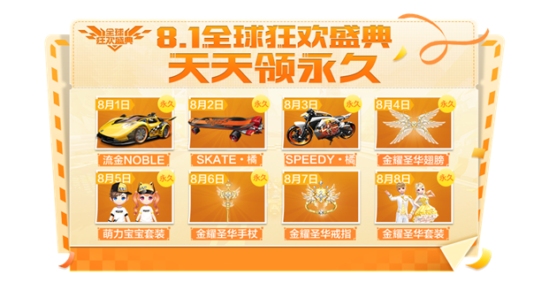 QQ飞车手游全球狂欢盛典8月1日开启!永久赛车套装8天送不停!
