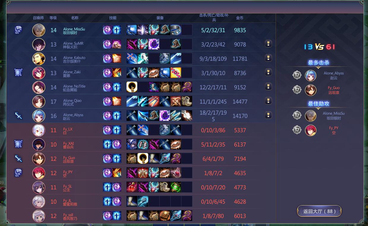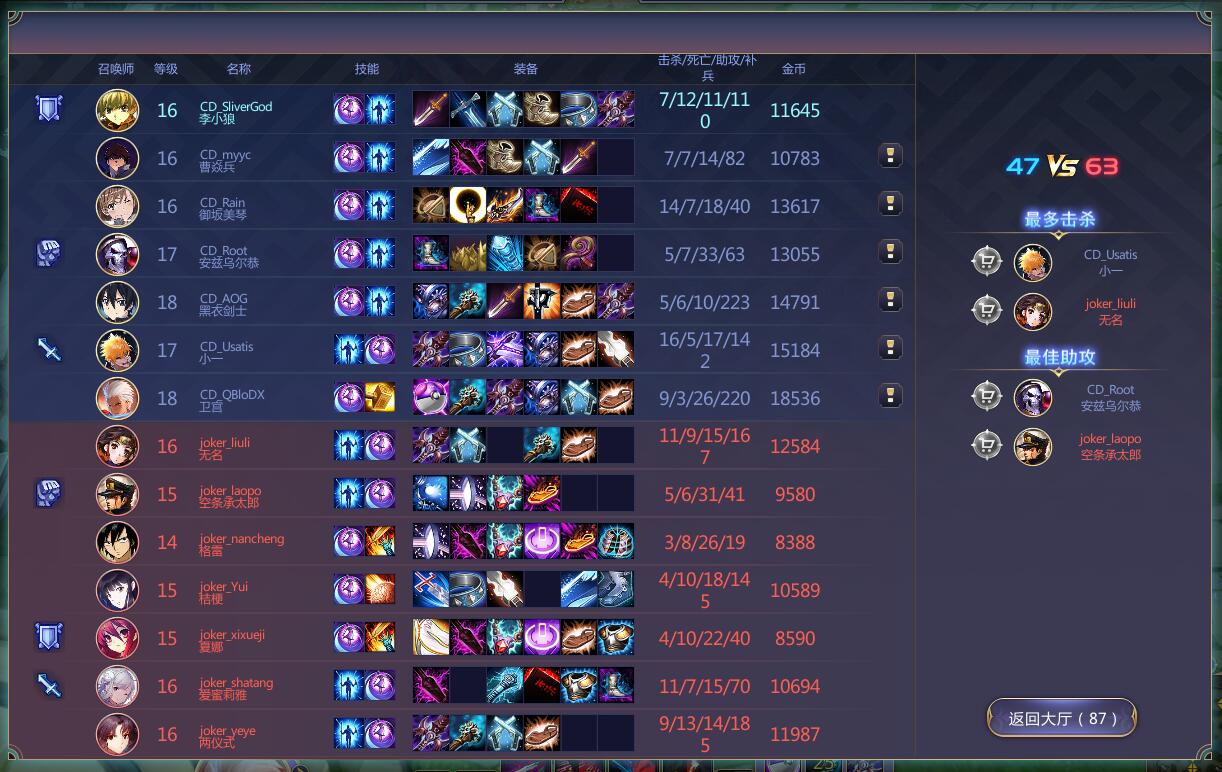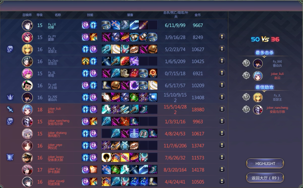 第一场 Chaos darkness vs 梵音 (以下简称CD、FY) 2分钟:CD上路少司命先手控制FY炮姐,白岩配合队友成功击杀,拿到一血 4分钟:FY无名配合队友秒掉少司命,双方上路势力持平 11分钟:小龙争夺战,FY先行开龙,被CD反打,双方爆发团战,CD白岩拿到3杀,打出了3换6 15分钟:CD白岩先手开团秒掉2人,CD乘胜追击,打出了0换4,经济优势领先3K 18分钟:CD小狼抓住FY中路走位失误,配合队友打出了0换3,顺势推掉了FY中路一塔 22分钟:CD吉尔伽美什拿下大龙,FY拿下小龙 23分钟:CD强势推中,FY被迫应战,CD赢得了团战,打出了2换7 26分钟:CD三路分带,成功推掉FY上路高地水晶,并一波推掉了FY基地,赢得本次比赛 第二场 Joker vs alone (以下简称JKR、AL) 1分钟:JKR上路升2强打一波,被AL无名反手制裁,送出一血 2分钟:AL无名先手控制,银时配合队友击杀JKR承太郎,扩大了对线优势 3分钟:AL少司命闪现控制JRK女帝,AL两仪式配合队友越塔强杀,打出了1换2 5分钟:AL无名传送支援下路,配合队友打出0换2,并顺势拿下小龙,扩大了经济优势 8分钟:AL少司命先手控制JRK女帝,AL两仪式配合队友强杀,打出了1换3 13分钟:AL拿下第二条小龙,经济优势领先12K 14分钟:AL抱团越下路2塔强攻,JKR被迫应战,AL两仪式打出了收割节奏拿到5杀,最终2换7 17分钟:野区遭遇战,AL抢攻,打出了0换4,AL顺势拿下大龙,经济优势领先22K 18分钟:AL依靠大龙BUFF下路强推,一波推掉了JKR基地,赢得本次比赛 第三场 Chaos darkness vs alone (以下简称CD、AL) 3分钟:AL纲吉先手控制CD,AL小狼配合队友成功击杀拿到一血,AL打出了1换2 7分钟:中路爆发团战,AL先手控制秒杀CD炮姐取得优势,最终打出了2换3 8分钟:下路CD先手开团,被AL格雷大招反杀2个,最终AL打出了0换3 12分钟:CD下路野区爆发团战,AL小狼成功三杀逃脱,打出了2换3 15分钟:中路爆发团战,AL小狼强势三杀,打出了3换6,并拿下小龙,经济领先10K 18分钟:AL强推CD上塔,被CD炮姐反手开图,CD一波打出了2换4,扳回一局 20分钟:CD上塔爆发团战,AL小龙打出收割4杀,最终2换5,并拿下大龙,经济领先15K 26分钟:AL强势推下,CD绝地反击失败,一波推掉了CD基地,赢得本次比赛 第四场 Joker vs 梵音 (以下简称JKR、FY) 1分钟:JKR伊卡洛斯强攻,配合队友成功击杀FY蒂塔,拿到一血 7分钟:JKR抱团推下,成功换掉FY下路2塔,FY趁机开团,打出了4换3 10分钟:野区遭遇战,JKR神威4杀,打出了1换5,经济领先9K 15分钟:JKR上路平推,赵云强上,成功破掉FY上路2塔,打出了2换4,经济领先13K 19分钟:JKR双路分推,破掉FY上中高地水晶,经济领先17K 26分钟:JKR强势中推,FY绝地反击失败,一波推掉了CD基地,赢得本次比赛 第五场 alone vs 梵音 (以下简称AL、FY) 2分钟:FY曹焱兵先手击杀女帝拿到一血,AL换掉了FY香风智乃,双方打出一换一 4分钟:AL上路传送支援下路,打出了0换2,并拿下小龙,经济领先4K 6分钟:AL上下路双线开花,打出了0换5,经济领先8K 14分钟:AL拿下大龙,经济领先26K 19分钟:AL经济领先30K,一波推掉了FY基地,赢得本次比赛 第六场 Joker vs Chaos darkness (以下简称CD、JKR) 0分钟:野区遭遇战,JKR无名先行拿下一血,最终JKR1换2 2分钟:CD上单刀光哥被JKR三人越塔强杀 4分钟:蓝方野区遭遇战,欢乐对打,双方3换3 5分钟:CD中路传送支援,强行开JKR下路团战,打出了0换6 10分钟:红方野区爆发战斗,CD RUA男拿下四杀,团灭了JKR 20分钟:中路爆发团战,CD RUA男神勇,4换7,助队友团灭了JKR 23分钟:刀光哥已经装备阐释者,成功击杀JKR无名 25分钟:CD拿下大龙,经济领先15K 27分钟:CD强势中推,一波推掉了JKR基地,赢得本次比赛 官网:http://300.jumpw.com/ |