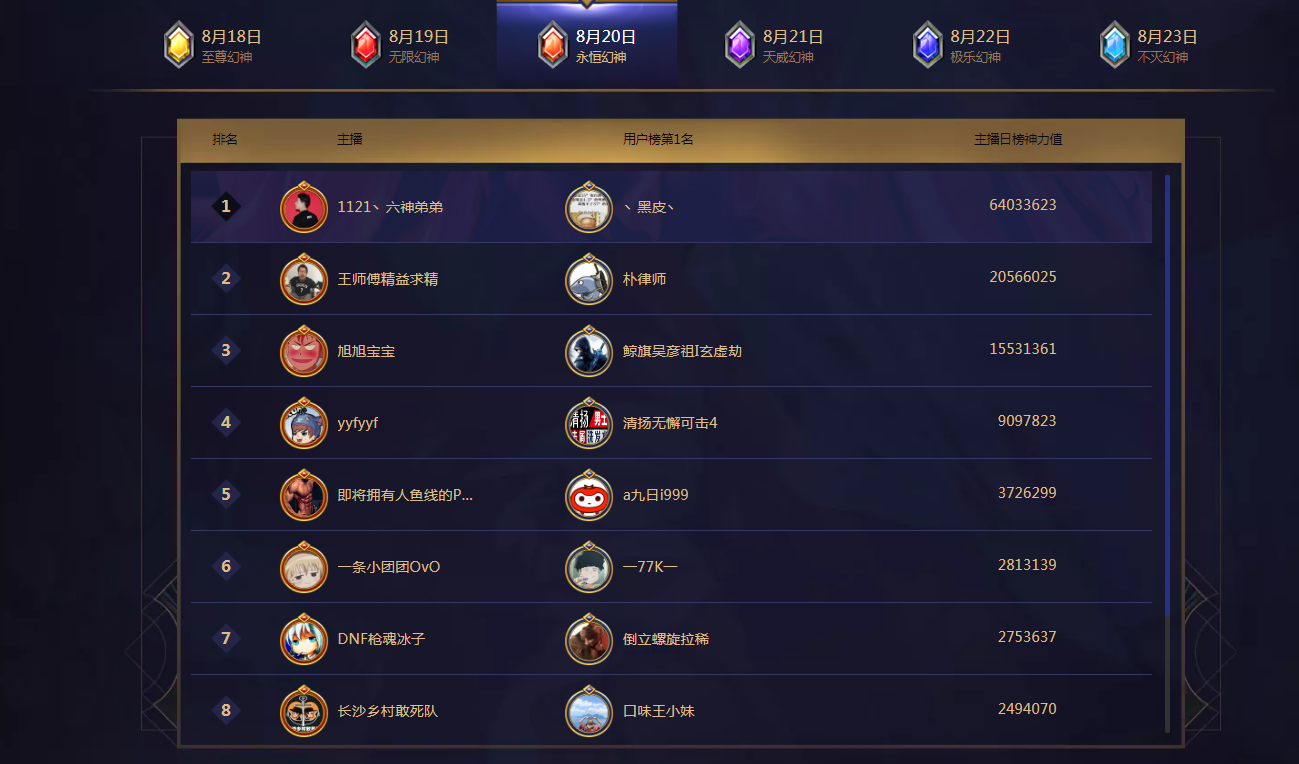 斗鱼平台为期6天的贵族活动“创世幻神·降临”,昨晚永恒幻神一锤定音,主播六神弟弟成为继旭旭宝宝、PDD之后的斗鱼第三位新幻神归属的直播间。昨晚其直播间空降神豪,怒刷84万人民币礼物助力六神弟弟成为小时榜第一,之后众多神豪持续发力在该直播间争夺永恒幻神之称。 虽首次激活幻神需要消费180万元,但仍有神豪竞相争夺。继旭旭宝宝和PDD得到幻神称号之后,来自小象互娱的朴律师继续发力,各方水友猜想小象互娱能否勇冠三军,再得幻神。谁料临近八点的最后时刻,六神弟弟直播间杀出神豪“黑皮”,怒刷14组9999办卡,夺得19点的小时榜第一,这波操作使得榜上诸位对手措手不及,此时幻神之争愈加火热,在颠峰时期的六神弟弟直播间人气高达1.21亿!之后该直播间各位神豪持续发力,凭借雄厚的实力,蝉联小时榜第一,并成功冲至日榜第一,最终与第二名拉开将近500万的差距,令人叹为观止。 结局至此,众水友不由得好奇这位六神弟弟,与他背后的公会,是何来历,为何能在昨晚脱颖而出,力压群雄,夺得永恒幻神之位。 六神弟弟是凡星公会旗下签约主播,是斗鱼和平精英板块百万级主播,拥有庞大的粉丝团,,皇冠高端局的技术型主播,原和平精英”斗鱼七雄“之一。高倍镜压枪依旧能够很稳,被粉丝称为是斗鱼刺激战场第一突击手。不定期会在微博及抖音更新游戏中的操作技巧,以及详细的手法解读,是一名非常耐心细致的技术型主播。在私下是一位阳光的大男孩,略显青涩的可爱脸庞却带着充满力量的眼神,依然坚定着自己梦想的道路。 六神弟弟背后的凡星公会,成立于2018年10月,成立时间不到一年却在极短时间内在斗鱼打出自己的名号。凡星公会在2019年3月的斗鱼粉丝节与此次幻神之争中都有极其亮眼的表现,足以见得其雄厚的实力。旗下知名主播游弋,花臂,六神,刘皇叔,潇男莫虐等分布在各类热门游戏板块,实属斗鱼直播平台游戏板块的优秀实力公会。 本次永恒幻神之争在结束前十分钟,新的幻神即将诞生,面对如此大的差距,对手提前打出了GG,此时的六神弟弟基本已锁定胜局,凡星旗下各位主播蜂拥而至,花臂、潇男莫虐、浪嗨、渣秀、腿田、72RC、HY怀孕、采臣、老阿MAN、罗晴子等热门主播齐刷超火庆祝斗鱼新幻神的诞生。最终冲刺阶段,直播间内气势磅礴,弹幕齐刷“1121upup!凡星牛逼!!!”、“非同凡响 星耀八方 凡星牛逼!”最终以单日640多万的礼物数据拿下永恒幻神!与此同时,在众多水友及主播的见证下,永恒幻神直接觉醒。这就是凡星公会的实力,这就是凡星公会的号召力! 永恒幻神奖励降临直播间后,主播与水友们热情高涨,激动之余,六神也对直播间一路走来的粉丝与在背后支持他的公会表达了真挚感谢。希望六神弟弟这匹黑马将在今后的直播中再创辉煌。 永恒幻神诞生在1121丶六神弟弟的直播间,而此时的六神弟弟犹如一颗冉冉升起的巨星,不甘平凡,星光闪耀。这是属于他的故事,书写着一段令人感叹不已的不朽传奇。加油,六神弟弟,星光大道,前途无限。 |
