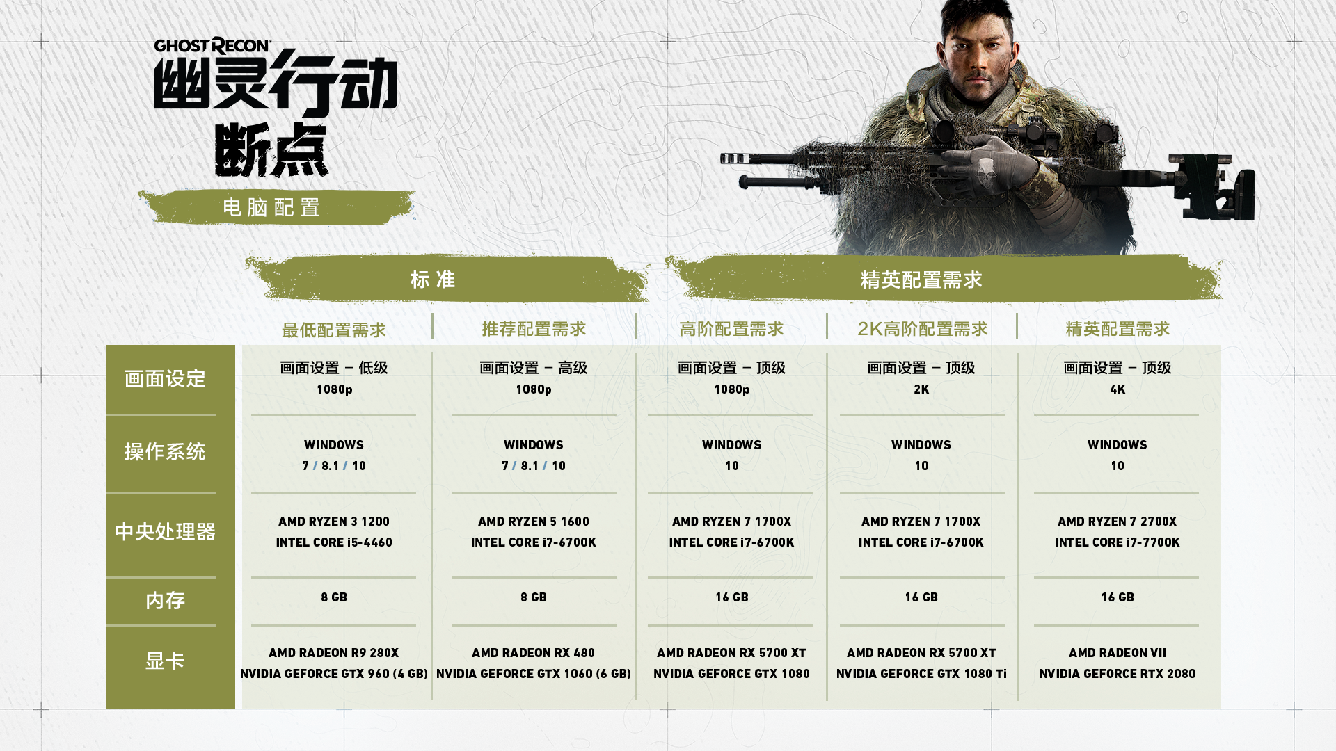 你准备好了吗?《幽灵行动:断点》PC配置需求公布