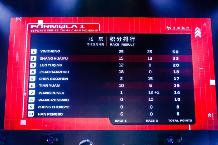 F1电竞中国冠军赛华北区分站赛落幕 20强出炉