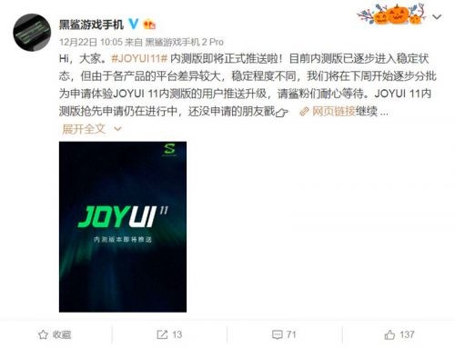 JOYUI 11内测版正式推送 黑鲨游戏手机迎全面革新