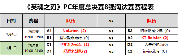 竞无止境,战至终章!由安德斯特赞助的《英魂之刃》2019年度总决赛8强淘汰赛于日前落幕。NoLater、KT Rolster、世界游泳冠军以及好运来战队力克众强敌,晋级4强,并将于1月11日-12日集结,争夺年度总冠军!最终决战一触即发,等待他们的将是5万现金大奖、年度总冠军定制头像框、高端电竞外设以及海量游戏道具等荣耀大奖。 除此之外,所有玩家现在关注“andaseaT安德斯特电竞椅”微信公众号,即可参与100%中奖年度狂欢抽奖活动,有机会获得高端电竞椅、限定英雄、绝版坐骑以及赛事竞猜币等福利好礼。 4强战队披荆斩棘 最终对决即将上演 1月4日-1月5日,2019年度总决赛8强淘汰赛顺利结束。8支战队强强对决,为所有玩家奉献了精彩的比赛。最终,在为时两天的赛程中,NoLater、KT Rolster、世界游泳冠军以及好运来战队披荆斩棘,成功晋级四强。赛程详细结果如下: 最终4强决赛将于1月11日-12日正式开幕,全区服所有玩家均可前往英魂TV观看赛事直播,为你支持的战队呐喊助威,更有机会获得神秘礼包、高端电竞外设等。快叫上你的小伙伴一起关注2019年度总决赛,见证属于英魂之刃的最高荣耀!(PS:豪取竞猜币,换安德斯特电竞椅!可通过客户端内福利社区进入赛事专题页-竞猜版块参与) 强者无畏勇者无敌 淘汰赛精彩回顾 NoLater 2:0 归来仍是少年 从外卡赛晋级的NoLater战队,在淘汰赛中表现出了强大的统治力,被玩家奉为夺冠热门战队之一。在上周的淘汰赛中,NoLater战队继续强势出击,2:0横扫归来仍是少年。在第一局比赛中,NoLater战队面对对手的入侵,毫无畏惧,在丢掉一血的情况下,反而拿下对方三个人头,中期双方互有胜负,最终NoLater战队凭借野区的一波混战,拿下比赛;第二局,归来仍是少年战队手感爆棚,前中期领先不少经济,几乎要攻上高地。NoLater战队表现出强队的大心脏,逐渐拉回经济,最终强势攻上高地,反败为胜。 超级爱霞霞呀 0:2 KT Rolster 实力相近的超级爱霞霞呀和KT Rolster战队在比赛前就有火星撞地球之势。在第一局比赛中,KT Rolster状态非常好,以18:4的人头比轻取对手;第二局比赛,双方前中期势均力敌,人头交替上升,经济也一直保持在1万差距以内。甚至超级爱霞霞呀战队一度有压制之势。然而KT Rolster战队个人选手操作天秀,在高地战的拉扯中,突然ACE,结束比赛。 世界游泳冠军 2:0 人走茶也凉 同样作为16强小组赛积分榜第一的世界游泳冠军战队,在比赛中表现出不俗的实力。在第一局的比赛中,双方战队打得有来有回,人头交替上升,在后期世界游泳冠军战队凭借扎卡的BUFF,抓住对方高地的一波失误,取得胜利;在第二局的比赛中,世界游泳冠军战队前期以压倒性的优势,完全压制对手,人走茶也凉战队在中后期通过几波小范围团战的胜利,一度有翻盘之势。最终世界游泳冠军战队凭借扎卡附近野区的一波团战,拿下比赛。 好运来战队 2:0 invincible invincible战队作为16强淘汰赛中勉强晋级的战队,他们是否能够继续延续好运,受到了不少玩家的关注。在第一局比赛中,好运来战队前期便拿下了不小的优势,随后雪球越滚越大,经济大幅拉开,拿下扎卡后一波带走敌人;而在第二局比赛中,好运来战队前期的优势比第一局还要大,强大的执行力让invincible战队完全喘不过气。最终以30:5的人头比拿下比赛。 竞无止境,战至终章!由安德斯特赞助的《英魂之刃》2019年度总决赛8强淘汰赛于日前落幕。NoLater、KT Rolster、世界游泳冠军以及好运来战队力克众强敌,晋级4强,并将于1月11日-12日集结,争夺年度总冠军!《英魂之刃》2019年度总决赛是由官方举办的高水平对决、高奖励回报的全民赛事。5万现金大奖、年度总冠军定制头像框以及高端电竞外设等你来夺! |