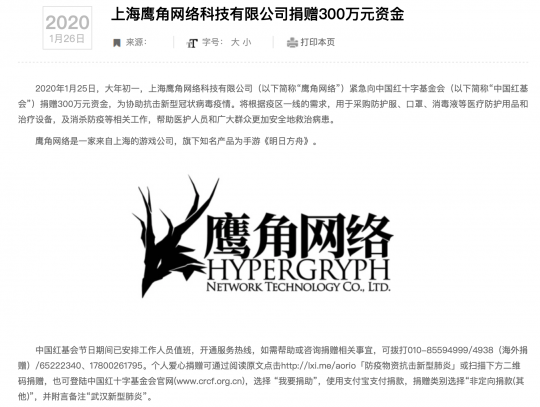 明日方舟:鹰角网络驰援肺炎疫情防控阻击战向中国红十字基金会捐款300万元