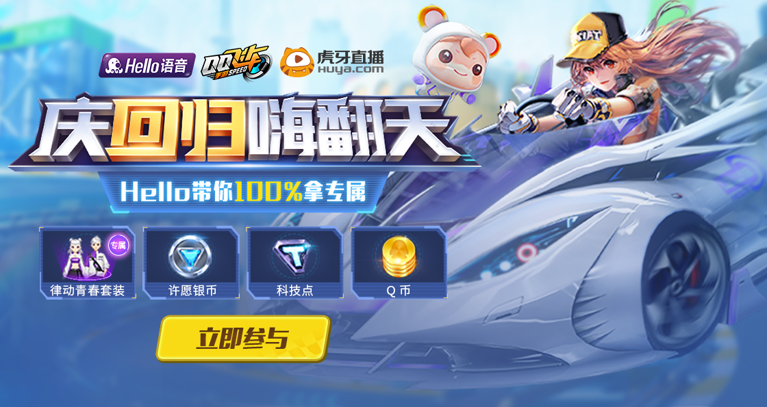 Hello语音庆回归嗨翻天 QQ飞车专属套装免费领