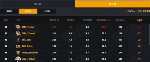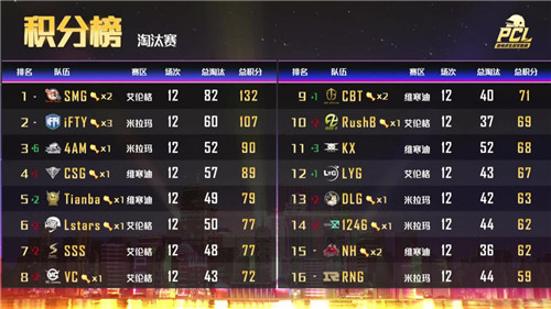 经过三日共计十八场比赛的激烈对抗,2020PCL春季赛淘汰赛阶段正式落下帷幕。SMG战队在三天的比赛中状态火热手感正佳,凭借着出色的团队配合和发挥,以两场胜利、82淘汰数,共计132总积分,位居淘汰赛积分榜的首位,强势挺进决赛环节。iFTY战队和4AM战队紧随其后,位于积分榜的二、三名。另外,CSG战队和Tianba战队等其他十三支积分榜前十六的战队也一同顺利挺进2020PCL春季赛总决赛。OIG战队等八支战队积分垫底,遗憾告别了季后赛舞台。 【二十四支顶尖强队十八场激烈对抗上演淘汰赛的强强对决】 受疫情影响,为保障广大PUBG电竞爱好者、选手和赛事工作人员的身体健康,2020绝地求生冠军联赛(PCL)春季赛选择了线上比赛的形式。在2020PCL春季赛常规赛刚刚结束的一天之后,季后赛接踵而至,于21日开始了激烈的淘汰赛环节。成功晋级到季后赛的24支战队被重新分为3个小组,进行为期3日的单循环淘汰赛,角逐最后总决赛环节的十六个名额。在连续不间断比赛的高强度较量中,参赛战队和选手展示出了精湛的个人技术和默契的团队配合,为玩家和观众们奉献出一场场精彩绝伦的刚枪对抗,诠释了团结拼搏积极向上的电竞精神。 【SMG战队豪夺淘汰赛积分榜首,SMG_17shou选手摘得淘汰王】 作为国内最早征战PCL赛事的老牌强队,以实力人气选手SMG_17shou领衔的SMG战队在本届春季赛中一直保持着火热的竞技状态。他们以常规赛积分排名第三的佳绩强势晋级季后赛。进入到更加考验战队心态的季后赛,SMG战队再接再厉,百尺竿头更进一步,彻底迎来了实力大爆发,以132的总积分位居榜首,领先第二名25分的好成绩强势晋级到总决赛。在整个季后赛中,SMG战队以1162的场均伤害、5.2的场均击倒力压群雄,82个总淘汰数位居榜首。优异的比赛数据充分展示了SMG战队在淘汰赛环节的强悍表现。其中,SMG战队的SMG_17shou以399的场均伤害、2.1的场均击倒和23.9MIN的场均生存时间,力克众多优秀选手荣当数据榜一。34的总淘汰数成就了SMG_17shou淘汰赛的“淘汰之王”荣誉。SMG战队的另外一名选手SMG_17baolei以311的场均伤害和23个总淘汰数,位于选手数据榜的第二位,属淘汰赛中表现最优秀的选手之一,两名选手共同助力团队强势挺进总决赛。 【新老战队表现抢眼,明星选手高光屡现】 经过常规赛15个比赛日的历练,顺利晋级到季后赛的战队无论是团队实力还是选手竞技水平都得到了很好的洗礼,在为期三天的季后赛淘汰赛环节迎来了大爆发。以SMG战队、iFTY战队和4AM战队这三支淘汰赛积分榜前三甲的战队为代表,传统老牌战队丰富的比赛经验和深厚的实力底蕴在季后赛得到了最大程度的发挥,助力他们在季后赛有着更加亮眼的发挥。与此同时,以常规赛冠军NH战队为代表的新锐战队在季后赛同样表现不俗,敢打敢拼,丝毫不怯场,成为季后赛上一道靓丽的风景。在选手数据榜上,多位新锐战队的选手挥发出色,占得一席之地,成为一股不可忽视的力量。老牌强队和新锐战队两股不同的力量在季后赛的舞台上激烈碰撞比拼较量,不仅让我们看到了精彩比赛,见证一代代强者之间的“各领风骚”,也让全世界范围的玩家和观众目睹PCL赛区蓬勃发展潜力十足的前景。 【决赛接踵而至,孰能问鼎冠军】 在4月24日至4月26日,2020PCL春季赛最终的总决赛将正式打响。成功晋级到总决赛环节的十六支战队将迎来最终的考验,向着最终的冠军荣誉发起最后的冲击。究竟是老牌强队可以再接再厉摘得冠军,还是新锐战队势不可挡成功问鼎,让我们拭目以待。同时,在为期三天的总决赛环节,战队们不仅要争夺春季赛的冠军荣耀,还将为了五月份PCS慈善赛(PCS Charity Showdown)五个宝贵名额而战。由于受到新型冠状病毒疫情在全世界范围内的公共卫生影响,原计划的包括柏林站在内的2020年3站线下PGS全球系列赛将被取消。PUBG公司不仅将为受PGS柏林站取消而受到影响的出线队伍提供现金补偿,还将引入全新PCS洲际线上赛的全球赛事规划。PCS洲际赛计划于今年5月、6月和8月以线上方式进行,每届洲际赛为期两周,各区域的比赛独立进行。其中,PCS东亚洲际赛(PCS-Asia)将包含中国大陆赛区(PCL)、中国港澳台赛区、韩国赛区和日本赛区。每届PCS东亚洲际赛将有16支战队参与,来自东亚4大赛区的队伍,将通过各赛区的自主赛事层层角逐,争夺相应晋级资格。各赛区种子名额分配情况如下:中国大陆赛区6个、中国港澳台赛区2个、韩国赛区6个和日本赛区2个。 5月的PCS将以慈善赛的名义展开,视作PGS柏林站同等规格的官方赛事,因此将沿用原PGS柏林站的选拔方式,即2020PCL春季赛总积分排名前5名战队及2019PGC全球总决赛第三名4AM战队,将获得PCS东亚慈善赛参赛资格。PCS慈善赛将于5月15日、17日、22日、24日线上进行。总奖金为10万美元,此外,PUBG公司将追加10万美元,以所有参赛战队的名义进行捐赠,PCS东亚慈善赛冠军将有机会选择受捐机构。电竞的正能量将从赛场出发,为更多人带来力量,勇士们,加油!让我们共同努力,为战胜疫情而加油! 圈无忌惮,战放奇迹!2020PCL春季赛决赛将至,4月24日至26日,每晚18:00,让我们一起继续关注16支战队在决赛环节的精彩表现,期待他们为我们带来一场电竞狂欢,一起见证冠军战队的诞生! PUBG公司是KRAFTON游戏联盟(前身Bluehole Inc.)成员,起始于Bluehole Ginno Games,2017年正式更名为PUBG Corporation。开发并运营PLAYERUNKNOWN’S BATTLEGROUNDS(中文