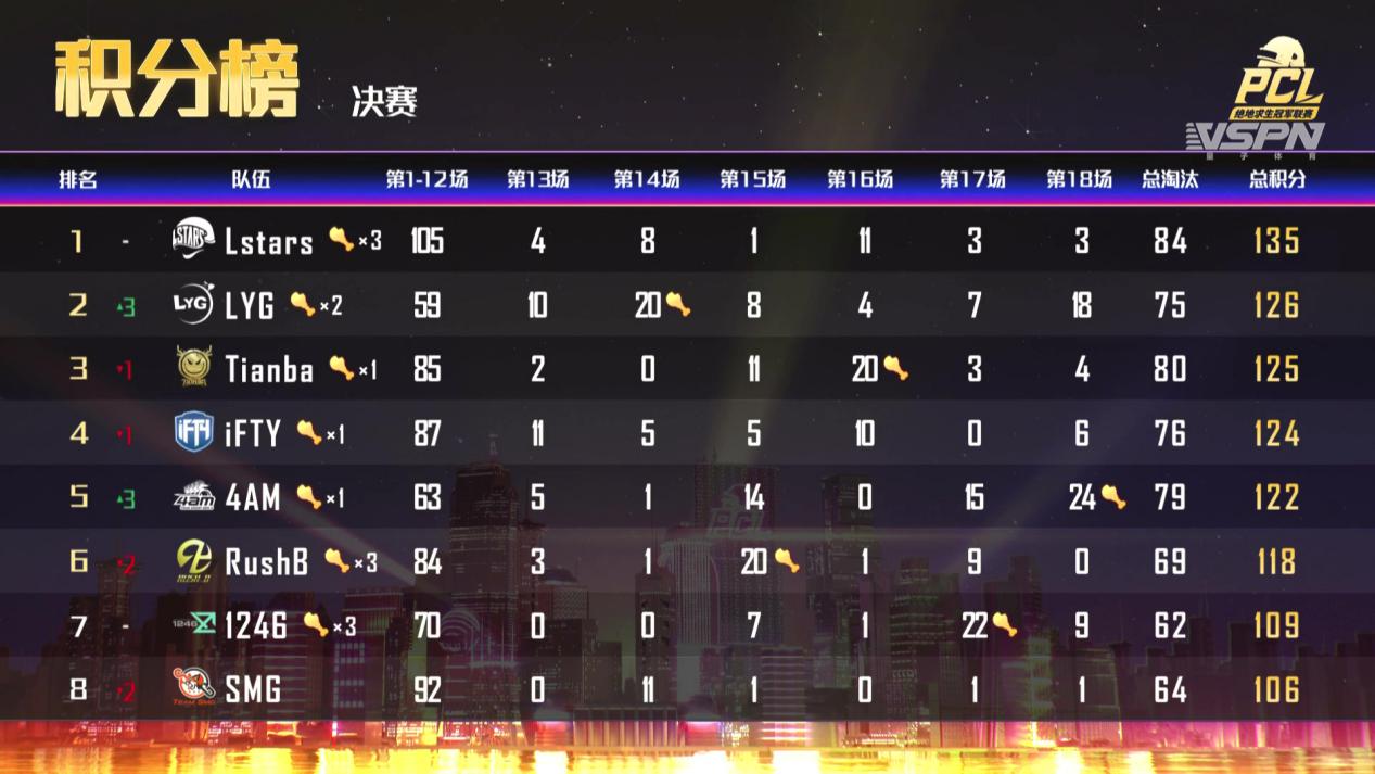 4月26日,伴随着4AM战队顺利拿下最后一场比赛的胜利,2020PCL春季赛正式结束全部赛程,圆满落下帷幕。Lstars战队问鼎2020PCL春季赛冠军。在整个决赛环节,Lstars战队共计获得三场比赛的胜利和84个淘汰积分,位于积分榜的首位。LYG战队和Tianba战队分别获得2020PCL春季赛的亚军和季军。 【厚积薄发愈战愈勇,Lstars战队豪夺春季赛冠军】 作为一支国内最早征战PCL赛事的老牌强队,Lstars战队在本届春季赛中厚积薄发,通过默契的团队配合和果断的战术执行,一步一步走向冠军的奖台。Lstars战队在常规赛中的表现不是很出色,以常规赛总积分第二十三的成绩勉强挺进季后赛。在进入竞争更加激烈的季后赛之后,Lstars战队开始迎来状态的提升,越战越勇,逐渐展现出真正的实力。在季后赛淘汰赛阶段,Lstars战队开始初露锋芒,以总积分第六位的佳绩闯入总决赛环节。 到了总决赛环节,Lstars战队彻底迎来大爆发,无论是队员的个人技术,还是战队的团队合作,亦或是比赛时的战术运营,Lstars战队的表现都可圈可点。在整个总决赛环节,Lstars战队在场均击倒和总淘汰数两个关键数据上力压群雄,以场均4.2个击倒和84个总淘汰数位于榜首。同时,Lstars战队857的场均伤害和12.3个场均投掷物使用,在数据榜上也名列前茅,助力战队强势夺冠。队内选手Lstars_LongDD和Lstars_Karl发挥出色,分别位于选手数据榜的第二位和第六位,二人合计获得52个淘汰积分,展现出强大的个人实力。2020PCL春季赛冠军的荣誉名至实归。 在最终的决赛环节,除了Lstars的精彩表现,以Tianba战队、iFTY战队和4AM战队为代表的老牌强队继续稳定发挥,凭借着稳扎稳打的团队风格和战术执行获得不俗的成绩,跻身于总决赛的前五名;在常规赛中“压线”晋级的LYG战队则在总决赛环节迎来了“觉醒”,斩获了总决赛第二名的好成绩,与Lstars战队也仅仅只有五分的差距,一度是决赛舞台上最强劲的冠军争夺者。常规赛冠军NH战队和淘汰赛第一的SMG战队在总决赛环节表现欠佳,分别位于总积分榜的第十一位和第八位,与接下来的PCS洲际赛资格失之交臂! 【巅峰对决高能不断,NH_MMing选手摘得战神荣誉】 在选手个人荣誉“淘汰王”方面的争夺同样是相当的激烈。最终,来自4AM战队的4AMxxxLu选手凭借着场均288的伤害和共计30个淘汰积分,荣获本届春季赛总决赛的“淘汰王”荣誉。来自CBT战队的CBT_M9Xxx选手在场均击倒和场均投掷物使用上占据榜首位置,分别为1.7个场均击杀和6.8个场均投掷物使用,个人数据位于选手榜的第三位。此外,来自RNG战队的RNG_XDD选手和来自Tianba战队的Tianba_LuRenA选手发挥同样出色,分别位于选手榜的第四位和第五位。 含金量最高的2020PCL春季赛战神荣耀则是由NH战队的选手NH_MMing获得。在整个春季赛中,NH_MMing创造了97个淘汰和19017的伤害,强势夺得2020PCL春季赛“战神”称号和五万元奖励! 【PCL军团集结完毕,PCS洲际赛重磅来袭】 由于受到新型冠状病毒疫情在全世界范围内的公共卫生影响,原计划的2020年3站线下PGS全球系列赛将被取消。取而代之的是全新的PCS洲际线上赛的全球赛事规划。PCS洲际赛计划于今年5月、6月和8月以线上方式进行,每届洲际赛为期两周,各区域的比赛独立进行。其中,PCL所属的PCS东亚洲际赛(PCS-Asia)将有16支战队参与,PCL赛区将有六个参赛资格。5月的PCS将以慈善赛的名义于5月15日、17日、22日、24日线上进行,视作PGS柏林站同等规格的官方赛事,因此将沿用原PGS柏林站的选拔方式,即2020PCL春季赛总积分排名前五名战队及2019PGC全球总决赛第三名4AM战队,将获得PCS东亚慈善赛参赛资格。(由于位于积分榜第五位的4AM战队已经拥有PCS洲际赛的参赛资格,因此由积分榜第六位的RushB战队顺延获得参加PCS洲际赛的参赛资格)PCS慈善赛总奖金为10万美元,此外,PUBG公司将追加10万美元,以所有参赛战队的名义进行捐赠,PCS东亚慈善赛冠军将有机会选择受捐机构。电竞正能量将从赛场出发,为更多人带来力量,勇士们,加油!让我们共同努力,为战胜疫情而加油! 获得PCS东亚慈善赛参赛资格的队伍名单如下: 韩国赛区: Gen.G / OGN ENTUS / VRLU GHIBLI / GRIFFIN / ELEMENT MYSTIC / Team Quadro 中国大陆赛区:4AM / Lstars / LYG / Tianba / iFTY / RushB 日本赛区:SunSister / DetonatioN Gaming White 中国港澳台赛区: Global Esports Xsset / Team Curson 圈无忌惮,战放奇迹!2020PCL春季赛圆满收官,让我们一起祝Lstars战队新王加冕,同时也期待PCL军团在接下来PCS洲际赛的表现! 关于PUBG公司 PUBG公司是KRAFTON游戏联盟(前身Bluehole Inc.)成员,起始于Bluehole Ginno Games,2017年正式更名为PUBG Corporation。开发并运营PLAYERUNKNOWN’S BATTLEGROUNDS(中文名《绝地求生》)游戏,致力于在PC、Xbox、手游等平台提供游戏服务。自游戏上线以来,PUBG在世界范围内广受好评,创造了7项吉尼斯世界纪录,并获得了多个游戏奖项。 PUBG公司目前以韩国总部为中心, 同时设立了北美、欧洲、日本、中国等多个分公司,大力发展电子竞技等多种新事业项目,努力将《绝地求生》打造成全球知名IP。更多关于PUBG的详情,请关注官方网站?www.pubg.com. 。 |