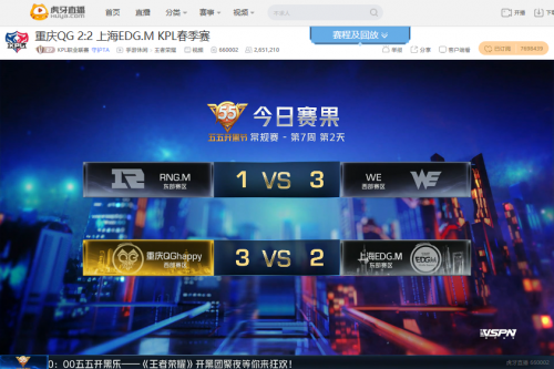 虎牙KPL:WE三比一大胜RNG.M连斩联盟四大老牌豪强