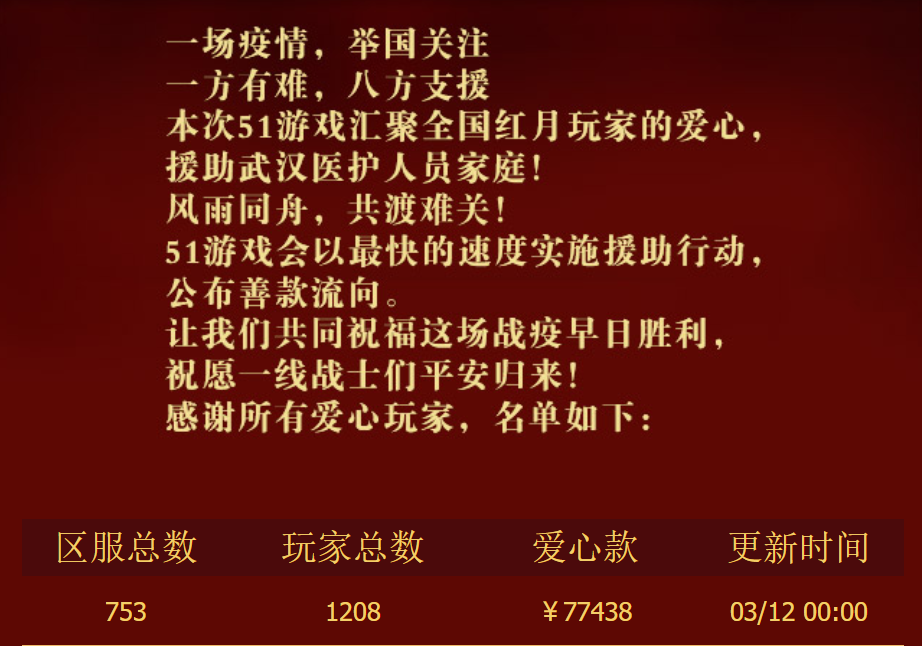 风雨同舟 红月传说1208位玩家爱心援助江夏区妇幼保健院