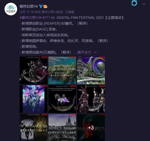 在今天举行的《最终幻想14》粉丝节活动中,SE公布了6.0版本“晓月之终焉”的完整PV。此外游戏官方微博也放出了新截图及6.0追加内容简介。海德琳、佐迪亚克篇的故事将在“晓月之终焉”迎来完结,但从6.1版本开始,游戏又会开启新的篇章,一起来了解下吧。 新增原创职业 [REAPER] 钐镰师。(暂译) 新增职业[SAGE] 贤者。 埃斯蒂尼安加入亲信战友系统。 新增地图萨雷安、萨维奈岛、拉札罕、叹息海。(暂译) 新增怪物。 新增原创副本[万魔殿]。(暂译) 新增无人岛开拓玩法。 追加伊修加德房区。 新增6.0典藏包道具。 新增维埃拉族·男性。 新24人副本名为“MythsoftheRealm”,与艾欧泽亚十二神有一定关联,目前官方还公布了艺术图。该作收藏版也已经正式公布,包含天野喜孝绘制的特别外包装盒、“骑士”职业光之战士手办、艺术设定集(带画框)、第十四席“阿泽姆”胸针等。 《最终幻想14》6.0“晓月之终焉”资料片预计将于2021年11月23日上线PS5/PS4/PC平台。 游戏截图: |