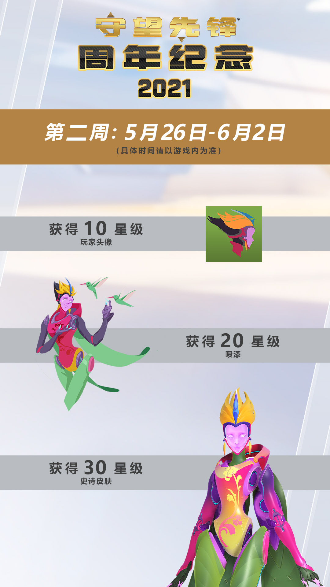 时间过得真快,《守望先锋》已经发售5年了。按照惯例,在今天开启了5周年庆典活动。不仅有新活动和新皮肤上线,登陆游戏还送一周年传奇补给,每周都有免费好礼可领取。心动不如行动,赶快去参加庆典活动吧! 乱斗大回归 作为《守望先锋》周年庆典的一部分,我们会解锁乱斗宝库。尽情体验怪鼠复仇、动感斗球、融冰决斗等过去的节日活动,在你最喜爱的模式中遨游。你可以在此查看完整的乱斗日程表,为重返激战做好准备。 获取每周奖励 把免费好礼带回家吧,在快速游戏、竞技比赛或街机先锋中赢得游戏,就能解锁全新的头像、喷漆,以及赛博医师安娜、天堂鸟“回声”和8号球“破坏球”等靓丽的皮肤。每一周都有新奖励! 升级收藏 在活动期间首次登录游戏,便可领取一份周年补给!每份周年补给都有可能包含往年周年纪念和节日活动的物品,不要错过将去年的精美皮肤收入囊中的机会。 如果一次性购买120游戏货币,还可以获赠50份周年补给,以及一份周年传奇补给,其中至少包含一项传奇物品!不要错失良机:当活动于6月9日结束时,周年补给就会消失! |