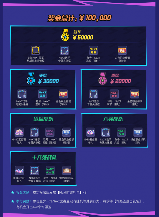 网易电竞NeXT《非人学园》QwQ杯赛S7决赛将在5月22日17:00正式开赛!经过之前的层层筛选,八强赛的选手们似乎距离最终决赛的大舞台更近了一步,与之相对的八强赛的战况则更为激烈,刀光剑影之下给各位观众带来了不小的惊喜,而面对即将到来的最终决赛,相信各位晋级选手们的表现更不会令大家失望! 八强回顾 谁主沉浮 在八强赛中,面对更为严谨复杂的赛制赛规,选手们也面临着更为艰巨的考验,成功进入八强赛的选手中无不是猫岛竞技场中的佼佼者。为期四天的八强赛里,各位选手给大家带来了各种稳健亦或新鲜的打法,赛场上的龙争虎斗也掀起了一波又一波赛事高潮,这不仅仅是对于游戏版本理解和英雄强度的碰撞,同时也是老牌强手和新晋黑马之间的碰撞,这些碰撞或是势均力敌或是摧枯拉朽,但是不论胜负,总有若干精彩的瞬间留存于大家的记忆中! 经过八强赛阶段,胜者组出线队伍为:STF,败者组出线队伍为:恶势力、Cpdd。在5月22日17:00,败者组出线队伍将先进行败者组BO5决赛,获胜方将与烂分进行最终BO7总决赛,争夺冠军! 巨额奖金终将花落谁家 本次QwQ杯赛S8赛事还将为参赛选手提供超丰富奖励!赛事奖金总计高达100,000元,冠军战队将独揽50000现金大奖!而亚军、季军队伍也将分别获得30000元、20000元现金奖励,前十六强战队选手还可获得数量丰厚的五色石,还有专属NeXT选手限定头像框、限时称号、职业标识等,象征荣耀的嘉奖都将赋予名副其实的优胜战队,而即将到来的决赛更是这场盛大演出的收官之战。 缜密的战术、精彩的操作、流畅的配合和刹那的爆发,一切的一切都将记录在这最终的决战舞台。过五关斩六将,最终的考验也将赋予这些满怀热爱与青春的选手荣耀与呐喊。而我们作为这场盛大赛事的见证者,不妨也用我们的方式为他们呐喊助威!前往CC直播观看赛事,参与弹幕互动等趣味活动,为喜欢的战队呐喊打call,更有令人心动的观赛福利掉落等你领取!如今,这场高燃之战即将收官!最终大奖将会花落谁家,让我们拭目以待! 想观摩巅峰决赛,见证冠军大奖花落谁家吗?想在在直播中呐喊助威,赢取豪华礼包吗? 5月22日的17:00,让我们不见不散!关注网易电竞NeXT《非人学园》QwQ 杯赛S8,前往网易CC直播观赛即可抽取海量绝赞幸运奖励,选手激情互动,尽享精彩赛事,豪华大礼拿到手软,同学们快快关注决赛直播,奖励拿不停! |