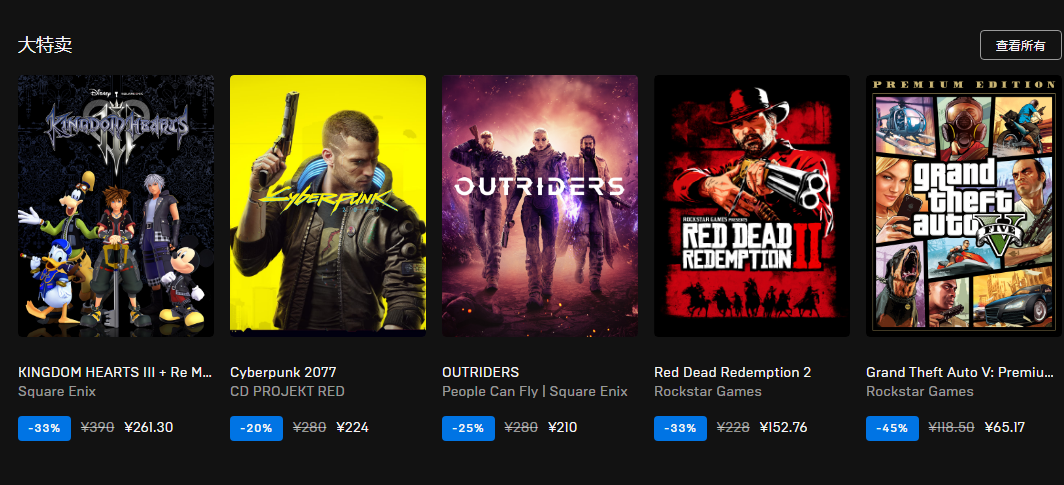 NBA官方于今天上午公布了本赛季MVP的最终获选名单,库里、恩比德、约基奇成为了仅剩的三个候选人。不过比MVP投票更能让玩家感到激动的是,Epic平台也在昨晚确定会在接下来的一周里送出《NBA2K21》。 玩家们的激动当然不只是因为能够白嫖到一款“年货”游戏,事实上遭到背刺的玩家甚至比去白嫖的玩家还要多。五一小长假期间,隔壁的Steam平台把《NBA2K21》的卖到了31元的盒饭价,许多人(包括我自己)都觉得能入手了,后面顶多也就降到20元无所谓了。 但Epic确实是大哥,半个月后就打出了这张让人闻之落泪的底牌。现阶段Epic的服务器又扛不住了,又到了非手机热点不能白嫖的艰难时刻了。 Epic的背刺针对的当然不只是一小撮《NBA2K21》的玩家,紧接着宣布的“大特卖活动”,瞬间就将玩家们的激情点燃了。大量游戏参与促销活动只是其次,“10刀券”的回归让许多大作都能以极低的价格被买入。 由于此前Epic国服的商品价格也被调整为了人民币,因此本次“10刀券”活动国服的玩家都能领到价值65元的优惠券,用于购买90元以上的游戏。 部分游戏推荐(用券后): 《荒野大镖客2》 普通版:87元 终极版:153元 《无主之地3》 普通版:64元(无法用券) 终极版:58元 《赛博朋克2077》:159元 《死亡搁浅》:44元 《四海兄弟》:44元 《荒野大镖客2》当前在Steam平台也在进行特价促销,售价166.83元,比历史最低价格贵八毛钱。当初“缺这八毛钱”而没从Steam入手的玩家,从Epic这就能够找补回来了。用券只需87块,你就能把近几年来最优秀的开放世界游戏带回家。 买东西向来讲究货比三家,只是Steam的活动在10刀券面前却丝毫没有还手之力,动辄少一倍的价格,堪比降维打击。即使有许多玩家对Epic的服务器非常不满意,但在更低的价格面前,还是逐渐倒戈了。 那么,大家在本次活动中,又入手了哪些大作呢? |