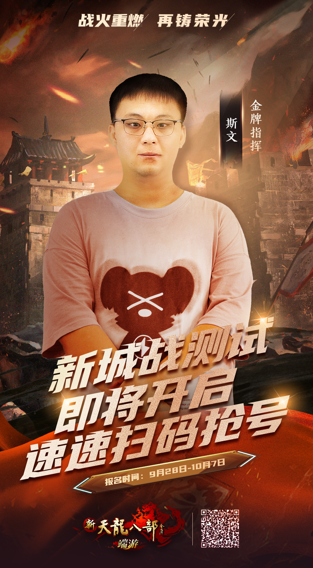 烽火再燃,三城归来,新城战测试活动将于今日正式开启!情怀重现,热血重燃。6位金牌指挥带你穿越熊熊战火,重回千人激战的热血盛况。更有指挥视频激情喊话,召唤各路英雄豪杰再战三城,开启拔旗激战! 【城战指挥官系列短片上线 唤起往日热血回忆】 还记得当初YY里那激情热血的战歌和指挥声嘶力竭的呐喊声吗?如今冲锋陷阵的口号再次响起,指挥官系列主题短片上线,生动演绎那些过往的故事与会议。让我们跟着指挥的召唤,再一次与兄弟们一起,携手并肩热血拼搏吧! 【金牌指挥上阵 城战测试全程直播】 新城战测试今晚将准时开启,10月14日-17日每晚19:00,精彩全程直播!关注官方微信视频号:@天龙八部,不仅可以直面熊熊战火,更有福利点卡免费领! 6位知名金牌指挥将分工合作,在两个测试服务器中各自带领属于他们的团队,为大家重新呈现一场精彩的千人对战,再现三城的激情与热血。 【测试服1区带队指挥:永恒鑫、斯文、战神飘】 决战天下战神飘:现在任何人皆可加入这个战场,我战神飘在这里等着你们! 永恒鑫:三城即将归来,如今我永恒鑫等着兄弟们一同王者回归! 【测试服2区带队指挥:老狼、剑指逍遥、墨寒】 剑指逍遥:我剑指逍遥在这里等着兄弟们一同回来,重燃当年心中热血,再战三城! 老狼:与兄弟们同生死共战斗记忆像潮水般向我奔涌而来,现在三城回来了,兄弟们也一起回来战斗吧!重燃当年心中热血,再战三城! 是时候跟随你心中的金牌指挥的召唤,和兄弟一起重燃热血,重装上阵,为荣誉而战! 关注10月14日-17日每晚19:00城战直播,共同见证江湖战火重燃的盛况,一起期待新天外的热血归来! |