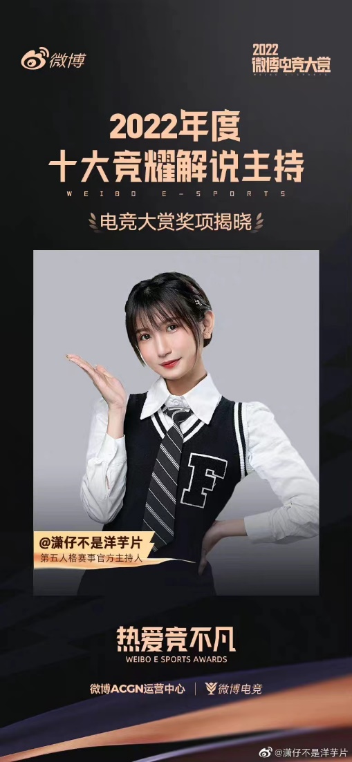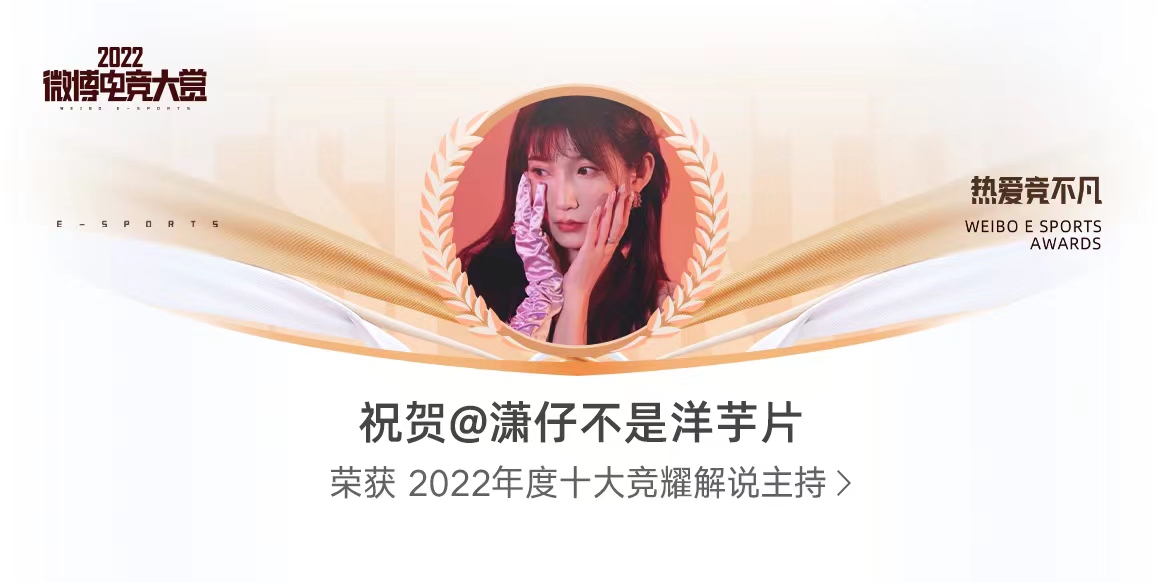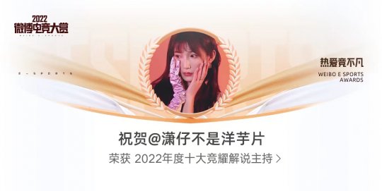 2022年度微博电竞大赏榜单公布,潇潇再次荣获十大解说主持