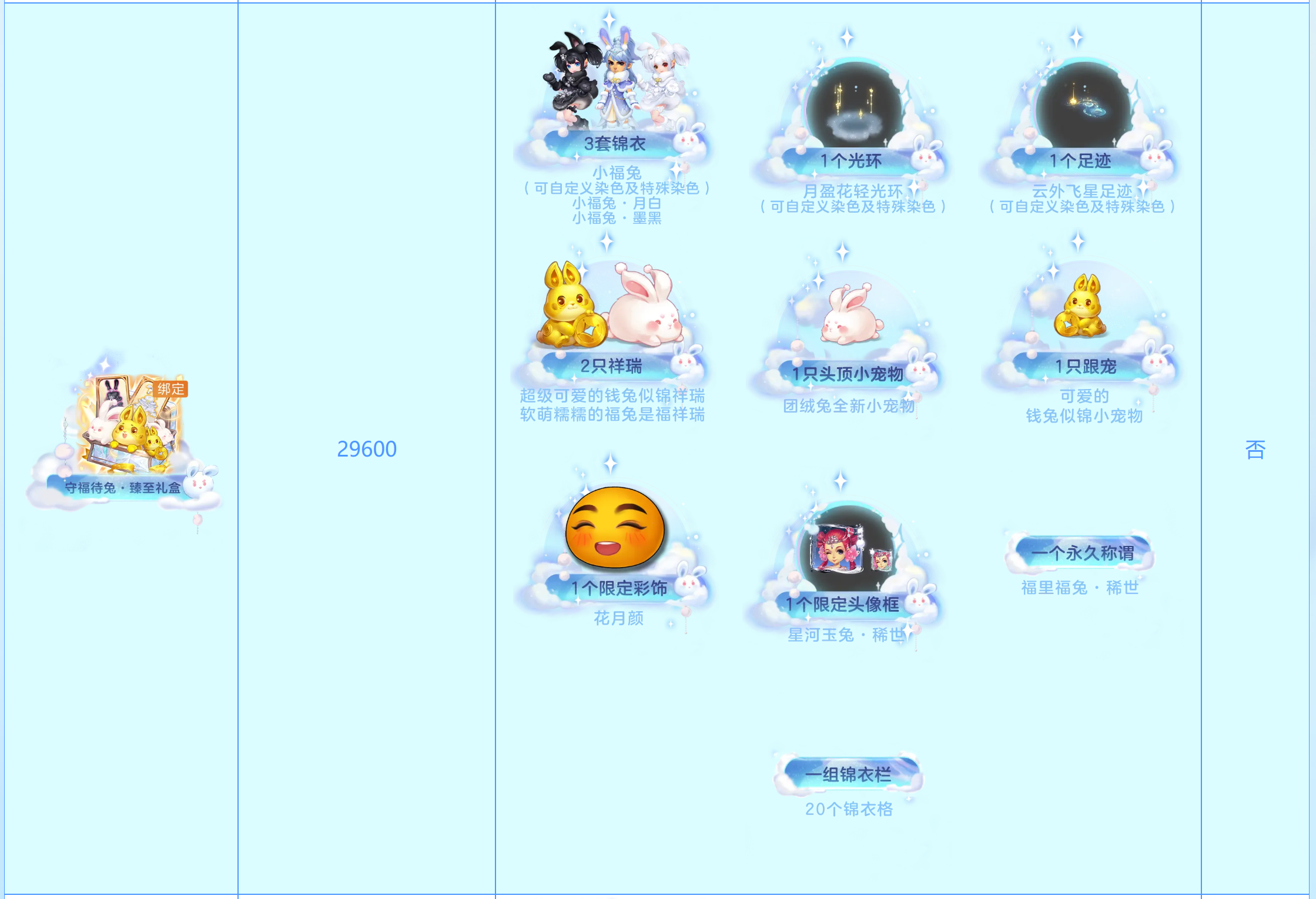 守福待兔岁晏暖,竹炉汤沸即安乐。 梦幻西游2023新春锦衣祥瑞来啦! 作为兔年开年的第一套限量锦衣祥瑞,梦幻西游今年的锦衣祥瑞,可谓将“可爱”这一特点 到了极致。 相信每一位玩家看到如此可爱的锦衣祥瑞之后,都会情不自禁,迫不及待的想要拥有它们吧? 那么今年的锦衣祥瑞,就有多款礼盒,可供大家自由选择。 礼盒价格越高,包含的内容也越丰富。 不过看着这些极其可爱的锦衣祥瑞,以及各种可爱的宠物、装饰和头像框,有些玩家尽管可能喜欢的情难自禁,但面对29600仙玉的价格,仍然有些犹豫。 对于这些心存犹豫的玩家,小编想说的是:“若是喜欢,就别错过。有些美好,一旦错过就不再。” 例如今年的祥瑞,钱兔似锦和福兔是福。 往年的嘉年华祥瑞,往往是单款就需要8000仙玉。 而今年,若是支付8000仙玉,那么你可以同时得到钱兔似锦和福兔是福祥瑞。 相当于花往年一份的钱,收获双份的可爱祥瑞。 值得一提的是,今年这款名称的寓意非常赞,外观也极其可爱的福兔是福祥瑞,还是一款没有可交易礼盒的限量祥瑞。 一旦错过了这款祥瑞,那从今往后就是真的错过了。 说起来,除了七夕祥瑞,梦幻已经很久没出过这种真正意义上的绝版祥瑞了。 此次梦幻在兔年推出这样一款颜值和寓意均是上佳的绝版祥瑞,足见梦幻的用心。 无论是从个人喜欢收藏的角度,还是从购买后待升值的角度看,这款福兔是福祥瑞,都真的不容错过。 当然,大家若是还在为价格犹豫的话,梦幻近期还有点卡充值刮刮乐活动,和新春翻一番活动可以参与哦。 大家充值点卡,兑换仙玉的过程中,每充值1000专用点,就可以获得一张“专用点刮刮乐”。 专用点刮刮乐的奖池中,包含神兜兜、高级魔兽要诀等。 若是运气够好,挂到了高级必杀之类的高级魔兽要诀,或者是神兜兜,可以回一大口血呢。 至于新春翻一番活动,那更是春节活动的重头戏。 活动期间,大家购买新春系列的绑定礼盒,每消费1000仙玉,即可获得一次翻一番的机会。 新春翻一番的奖池中,有着高级魔兽要诀、神兜兜、高等级珍珠、五宝以及彩果等诸多高价值道具,而且奖励都是翻倍的。 若是在玩翻一番玩法中运气爆棚,像去年这位欧皇玩家这样,在新春翻一翻玩法中,获得10本高级魔兽要诀。 那完全是有机会满血复活的,甚至还小赚一点。 所以,各位还在犹豫的小伙伴,没什么可犹豫的啦! 面对喜欢的锦衣祥瑞,就要赶紧冲呀! 说不定新春翻一番玩法的欧皇就是你!届时就相当于零成本获得今年新春的锦衣祥瑞啦! |
