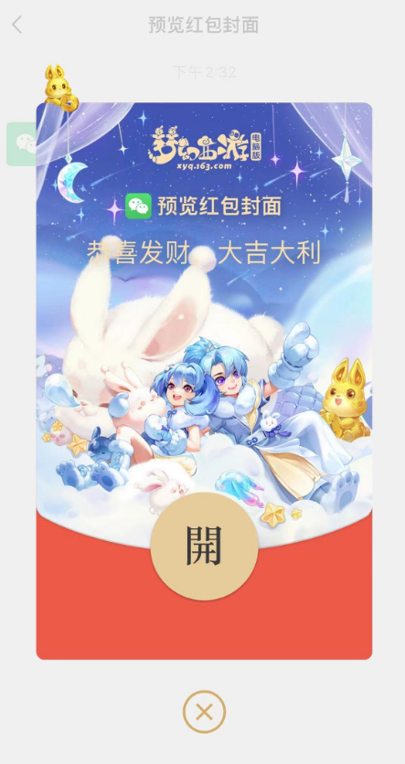 在2023新春佳节即将到来之际,《梦幻西游》电脑版给各位少侠精心准备了2023新春锦衣祥瑞专属红包封面。本次红包封面限量免费派送,让满含甜蜜祝福的红包,在三界传递节日温暖。新春福兔送吉祥,愿三界少侠们新的一年福兔双至、瑞兔呈祥! 活动时间: 2023年1月13日12:00限量开抢,数量有限,先到先得! 领取方式:活动期间,少侠可关注官方公众号“梦幻西游”,在对话框中发送“小福兔”或“钱兔似锦”或“福兔是福”即可领取2023新春锦衣祥瑞专属红包封面,数量有限,先到先得! 扫描下方二维码关注官方公众号“梦幻西游” 本次红包封面选用了《梦幻西游》电脑版的新春锦衣“小福兔”、新春祥瑞“钱兔似锦”和“福兔是福”以及新春小宠物“团绒兔”和“钱兔似锦”的合照,将传统民俗的生肖文化元素融入红包设计,寓意非凡。 玉兔出月欢,福运满三界!《梦幻西游》电脑版2023新春锦衣祥瑞专属红包封面即将上线,在这个兔年,大家记得准时上线领取红包封面哦~ 最后送上我们的新年祝福:新的一年,祝少侠们兔年快乐、扬眉兔气、兔年一切都如意! |