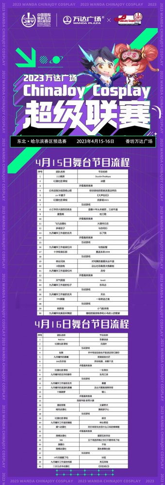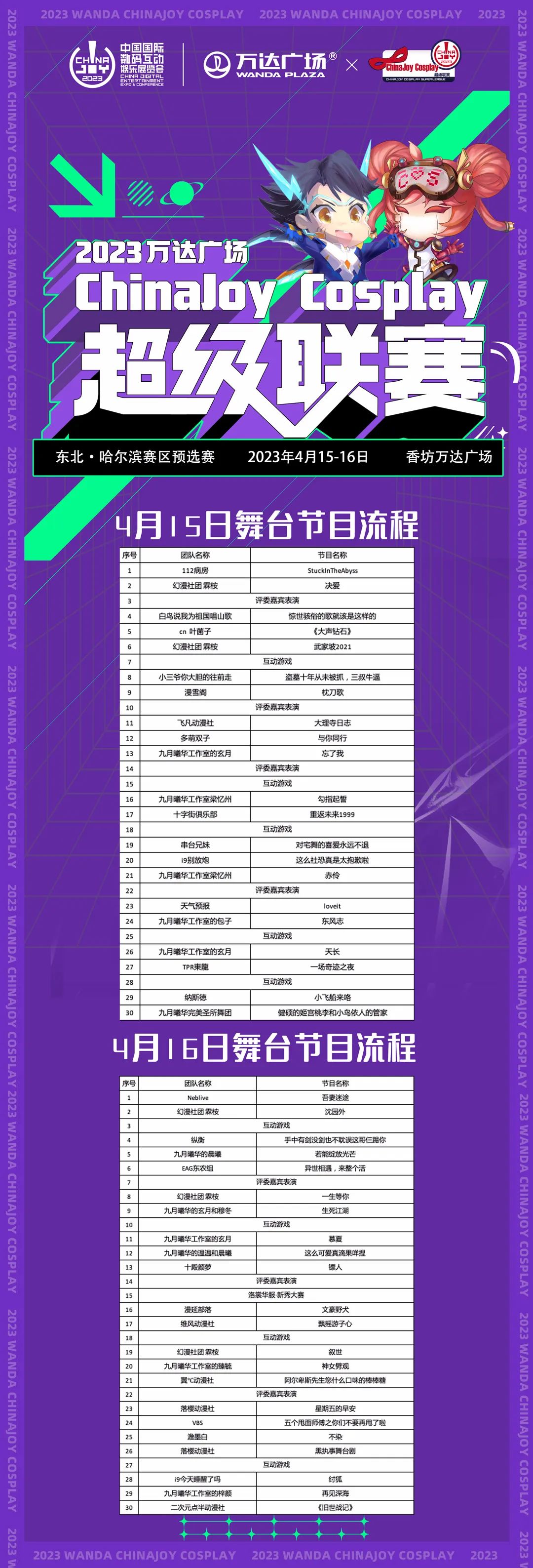 2023万达广场xChinaJoy Cosplay超级联赛 东北·哈尔滨赛区预选赛 ? 舞台节目流程公布!