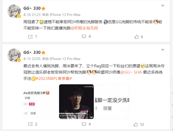 作为永劫无间职业联赛NBPL S2赛季的三排冠军,GG战队的竞技实力毫无疑问位于职业战队中第一梯队,330一手标志性的大佛、李鑫淼沉稳又不失激情的指挥、还有小恶魔miskya强势的远程输出,让GG战队在三排职业赛场留下无数高光时刻,而“18岁出道”的GG.SHA在单排赛场中也有不少亮眼的发挥。但在赛场上的他们虽然强势,但是面对镜头和采访总是显示出年轻的腼腆,尤其时人称三神的330,面对镜头几乎不苟言笑也很少发言,甚至有些社恐。 不过在他们在日常生活中,却是完全不同的样子。赛场之下一改往日腼腆和严谨的风格,各种搞笑花活说来就来。其中最值得一提的便是擅长大佛经常被别人修脚的330,平日里竟然边洗脚边研究各种战术,据说不少团队战术都由此而来。不仅如此,330还带队友们一起,可以说边洗脚边讨论战术已经成为了GG战队的独家秘笈。在NBPL的官方夺冠纪录片中,李鑫淼爆料了这项秘闻,引得水友和粉丝们纷纷直呼想看GG战队洗脚。 在战况激烈的NBPL S3赛季,有不少玩家在330的抖音下提议让GG.SHA帮三神洗脚。330也甚至在微博当中对这一呼声进行了“flag”式的回应。 在网友们的热情呼唤中,GG战队终于要兑现承诺,开启GG“洗脚”第一届水友挑战赛。本次直播GG战队将邀请几位按脚师傅上门洗脚直播给选手们上上强度,同时也邀请各位水友化身“扬州修脚老师傅”为330的大佛“修脚”,搞不好GG战队新战术也将应运而生。届时还会更多神秘的永劫无间抖音达人空降直播间,一起狙击GG战队,趁“脚”之危,偷袭GG! 各位技师们!准备好了吗?5月1日 晚上19:00 CC直播永劫无间专区GG.330直播间,一起狙击顶尖职业三排战队,现在加群:695296254即可报名水友赛!各位永劫“技师”们,千万不要错过了! |