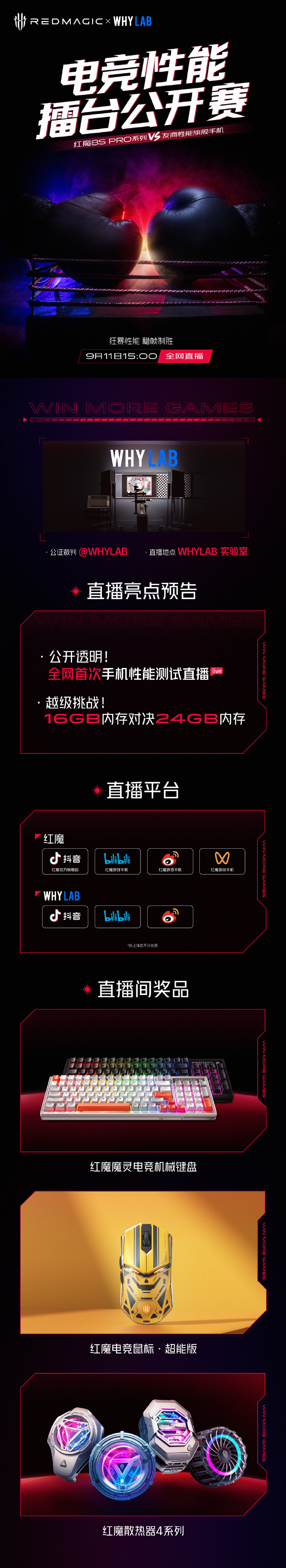 越级挑站来袭!9月11日15:00红魔电竞性能公开赛即将开启