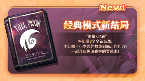辞旧迎新过大年,《月圆之夜》春节更新即将于1月29日上线,小红帽日记、经典模式、镜中对决三大模式都将迎来重磅更新!体验小红帽日记全新职业“小魔术师”,解锁经典模式全新结局,或邀约好友亲朋参与镜中对决新春活动,2024相约月圆共度新春! 小红帽日记新职业 小红帽日记即将加入新职业——小魔术师。施展魔术与法力,与小木匠一起开启全新的古堡探险。该模式将新增17张全新卡牌,3个全新新祝福与3个冒险成就。 经典模式新结局 在本次更新中,经典模式“终章·地底”将新增三个全新结局,在黑暗森林中探寻故事的真相,小红帽与小木匠的故事到底走向何方? 限时新春年兽挑战 年兽出没请注意!经典模式将与1月29日-2月24日开启限定怪物挑战。击败3个年兽怪物:大地之年兽、海潮之年兽、燃烧之年兽即可获得“除夕”荣誉成就。 神龙祝福迎新历 《月圆之夜》镜中模式S2赛季正如火如荼进行中,新年神龙将于2月8日-2月18日赐予祝福,参与活动“神龙祝福迎新历”即可解锁全新春节特色表情、皮肤。 本次活动分为龙睛侦探和神龙试炼两个部分,完成对应任务即可获得新春福利。 新年新气象,和《月圆之夜》一同踏上全新冒险之旅,开启你的龙年传奇故事。 |