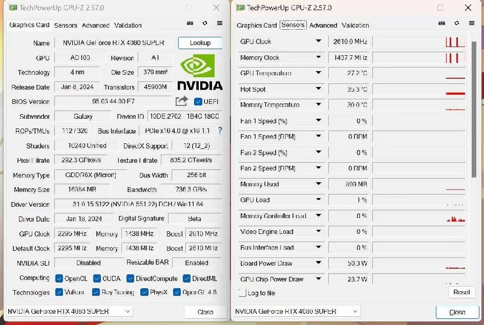 影驰GeForce ?RTX 4080 SUPER OC版本在今日进行了正式发布。作为GeForce ?RTX 40 SUPER 系列最后出场的型号,自然是要为用户们带来最压轴的性能表现。作为OC版,本次显卡的发布主打一个加量还降价,为4K游戏与生产力创作提供全新的选择。影驰也为用户们带来了影驰GeForce RTX 4080 SUPER 星曜/金属大师/大将 三大系列供用户选择。基于Ada Lovelace架构的GeForce RTX 40 SUPER系列显卡,在各方面都进行了升级提升,为用户带来更高的生产力以及性能体现。让用户不管在游戏还是创作中,都能感受到超强的性能发挥。 本次为用户带来的是影驰GeForce RTX 4080 SUPER 星曜 OC 的详细评测,分为产品拆解、画面对比、游戏实测与生产力实测几大部分,让用户们能够更加直观的了解该卡的性能提升与实际表现。 首先来看一下影驰GeForce RTX 4080 SUPER 星曜 OC的的规格参数与GeForce RTX 3080 Ti 和GeForce RTX 3090 的对比: 产品开箱 产品拆解 首先进行的部分是影驰GeForce RTX 4080 SUPER 星曜 OC 内部结构的拆解。 首先是影驰GeForce RTX 4080 SUPER 星曜 OC最为核心的部分——采用 TSMC 4N ?NVIDIA定制工艺的Ada Lovelace 架构核心。该架构在其前身Ampere的基础上进行了多项改进,所搭载的第三代 RT Core 和第四代 Tensor Core提高了光线追踪性能,且进一步加速深度学习运算。影驰GeForce RTX 4080 SUPER星曜 OC核心代号为AD103-400,拥有10240个CUDA处理器,提供 52个FP32 shader-TFLOP S 用于染传统光栅化图形,320 第四代 Tensor Cores 提供836个 ATOPS 用于 AI处理技术和 DLSS 技术,80 个第三代 Ada RTX Cores提供 121 RT- TFLOPS 为下一代光线追踪提供动力!得益于改进的RT核心,RTX 40 SUPER系列在实时光线追踪渲染方面的能力得到了大幅提升。同时也实现提供更多的并行处理能力,进一步提高了图形和计算性能,为用户带来极致的性能输出。其基础频率达到2295MHz,加速频率更是上涨到2610MHz。 显存上更是采用了目前最快频率的显存 23Gbps!16GB GDDR6X超大显存,位宽为256-bit。以满足高分辨率游戏和专业级应用程序对显存的需求。另一方面,GDDR6X显存提供了比前代GDDR6更高的数据传输速率,这意味着影驰GeForce RTX 4080 SUPER 星曜 OC可以更快地访问和处理存储在显存中的数据,整体图形性能进一步提升。通过采用先进的制造工艺和优化的电路设计,GDDR6X显存在提供高带宽的同时,还能维持较低的能耗,有利于控制系统的热量和功耗。 电源接口为符合ATX 3.0/PCIE-5.0 供电规范的12VHPWR。但用户需要注意,虽然 GeForce RTX 40 系列显卡的供电接口支持 PCIe5.0 规范,但它的 PCIe 接口还是只支持PCIe4.0。新架构优化了功耗,提供了更高的性能功耗比。辅以豪华用料,12层高规格 PCB,良好的电气布局,严谨合理。进一步优化电气性能,保证显卡的稳定运行。18+3相的超豪华供电配置,保证性能在满载情况下也能稳定输出。影驰GeForce RTX 4080 SUPER 星曜 OC的功耗为 320W(MAX 450W),推荐用户们搭配850W及以上功率电源使用。 “星曜”系列 主打可个性化定制,经典钻石切割设计的可拆卸式透明外壳,配合全方位升级的ARGB灯效用户们营造出千层镜光效,如千重镜面带来视觉上的体验。配合一体压铸的金属白色背板,给予了用户们最大的可个性 DIY 化的空间。镂空设计在确保散热的同时,配合白色喷涂搭配丝印工艺,进一步提升了显卡整体的质感。作为主打可个性化定制的“星曜”系列,影驰向用户们保证,可在不改动、不损坏显卡PCB元器件的情况下,对上盖以及背板进行喷涂DIY,并能正常享受影驰提供的个人送保和三年半质保服务,真正做到了“外壳随心拆,售后无忧保”。 全新一代星卓 III 散热系统 以三个特制直径 102mm、厚度 20mm 的高规格风扇组成,每个风扇拥有11片静霜扇叶,实现更强风力和更大风量。实现了即使在极端负载下,温度依旧控制在理想范围内。同时保持响声低至30分贝,保证了用户舒适安静的使用环境。支持智能启停,随时随地为用户在体验与负载中收放自如。 星卓 III 散热系统还配备有有 4*Ф8mm+5*Ф6mm镀镍复合热管,加强抗氧化的能力。配合大面积的高效均热板和鳍片,结合回流焊接工艺,带来强劲散热性能。配合高强度的铝合金中框链接PCB和散热器,在确保散热效果的同时进一步提升保护能力,防止显卡变形,保障显卡的正常使用。 影驰 GeForce RTX 4080 SUPER 星曜 OC 配备全数字显示接口,支持4屏显示。升级拥有 HDMI 2.1 接口、支持动态 HDR、支持游戏模式动态刷新率等等。DP1.4a*3 最高可支持 8k@60Hz 超清输出。 影驰 XTRME TUNER 新世代?新魔盘支持OC、灯效调整,支持OC Scanner等功能。让用户实现超频,温度监控等等,还有更多新功能等待发掘,尽请期待! 性能测试 参数平台 GPU-Z 以上为影驰 GeForce RTX 4080 SUPER 星曜 OC 的基本参数。 FurMark 影驰 GeForce RTX 4080 SUPER 星曜OC满载情况下的温度为61.7°,功耗也仅有315.1W。足以见得,该卡控制温度和功耗的能力是十分强劲的。 3DMARK 影驰 GeForce RTX 4080 SUPER星曜 OC在3DMARK测试中,显卡分数为28694分。3DMark Fire Strike DX11测试的分数也达到了66794,在3DMark ?Portal Royal光追测试的成绩则为18608。总体分数表现算的上是优异,即便在运行3A光追游戏大作时,也能够给与用户们一个优异的性能体现。 游戏测试 在游戏测试部分选择了经典的显卡杀手《赛博朋克 2077》和时下热门游戏《幻兽帕鲁》作为测试方向,同时为了进一步让用户了解影驰 GeForce RTX 4080 SUPER星曜 OC的性能体现,还选择了GeForce RTX 3080 