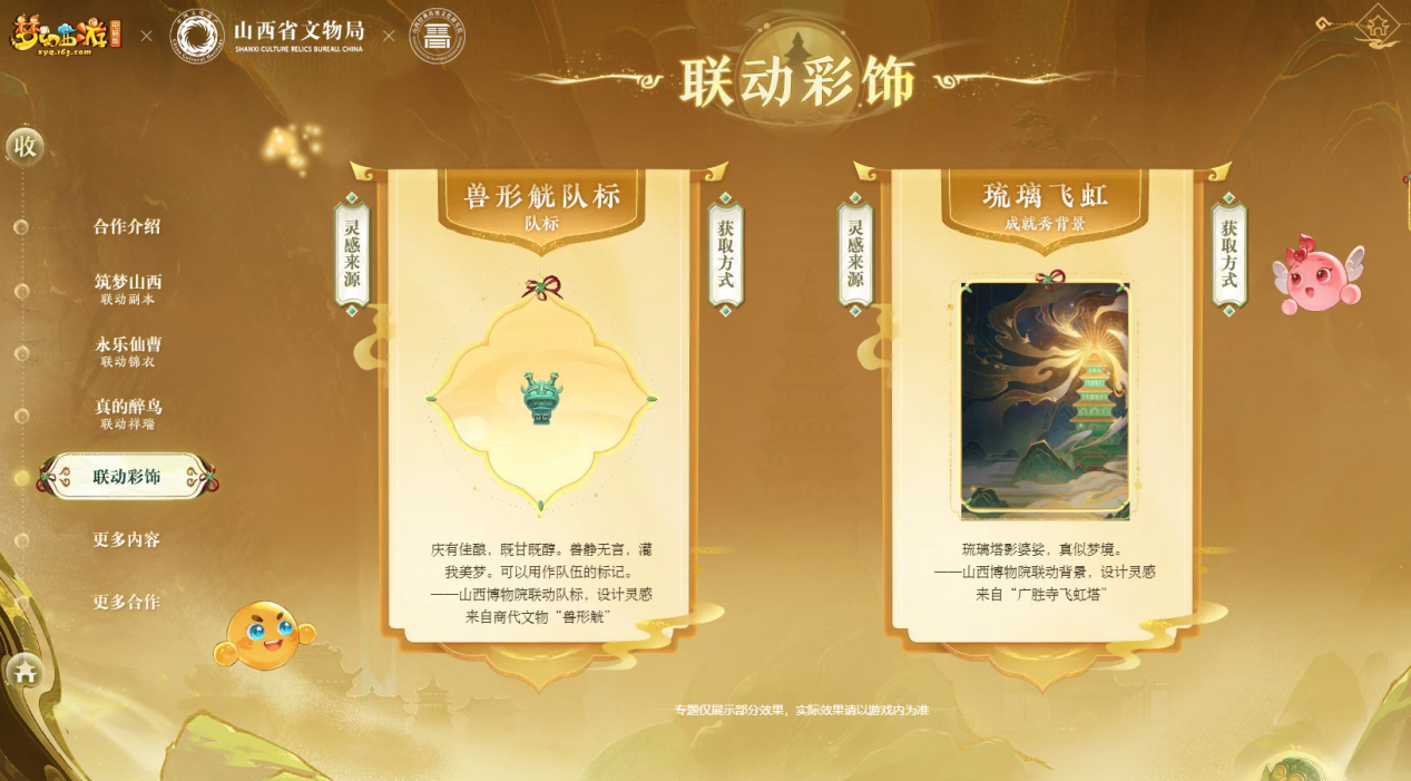 近日《梦幻西游》电脑版上线了“筑梦山西”联动主题活动,这是由《梦幻西游》电脑版联合山西省文物局、山西经典传统文化研究院展开的又一次跨界合作,游戏联动文博单位完成了一次别开生面的晋地之旅。 勇于打破游戏与文化的次元壁 《梦幻西游》电脑版用游戏内不一样的视角,将永乐宫、玉皇庙、云冈石窟、晋祠、山西博物院、广胜寺及铁佛寺这些著名景点的历史文化与游戏巧妙结合。玩家们日常熟知的副本、锦衣、坐骑、小队标识等游戏内容,都以独特的方式与山西历史文化关联在了一起。 不仅商代青铜器“鸮卣”变成了游戏里的祥瑞坐骑,呆萌可爱;永乐宫《朝元图》壁画也成为了锦衣的设计灵感,配色与样式的设计皆参照了这幅代表了元代壁画最高成就的艺术宝藏,设色富丽生动,款式端庄肃穆。文物与游戏的新颖联合,冲破了历史文化与电子游戏的次元壁。 翻开历史故事感受晋地之美 此次与《梦幻西游》电脑版联动的山西七大文博单位皆为国家级重点保护单位、历史悠久,联动的每一件文物都可称得上是中华历史文化之瑰宝,有着属于自己的故事。打开《梦幻西游》电脑版“筑梦山西”的专题页面,便可跟随梦幻玩家的视角,看到相关文物联动景点及文物的详细介绍。 联动彩饰“琉璃飞鸿”的背景便是广胜寺的琉璃七彩宝塔,距今已有1800多年的历史,因在阳光的照射下宛如斑斓的彩虹得名飞虹塔,是中国保存最完整的七彩琉璃宝塔,亦是五座佛祖舍利塔和中国现存四座古塔之一。而最新联动副本“筑梦山西”中出现的佛窟则是著名的云冈石窟,它开凿于公元5世纪,距今已有近1600年历史,其规模之大、保存之完整已被联合国教科文组织列入“世界文化遗产名录”。还有“鸟尊”“兽型觥”等山西博物院镇馆之宝,讲述晋地千年的历史文化。 飞虹塔 鸟尊 明确弘扬历史文化的使命感 《梦幻西游》电脑版是一款经典国风游戏,一直致力于弘扬我国优秀传统文化。无论是多年来与我国多个文化单位、非遗项目的深度合作,还是建立了薪火逐梦、国风文化、非遗守护等多个宣传传统文化的分区,都能看到《梦幻西游》电脑版将一直立足传统文化,将弘扬传统文化作为己任的决心。 本次与山西文物、山西文化的合作,同样记录在《梦幻西游》电脑版官方网站中薪火逐梦的专栏里。到这里,也只是这场晋地之旅的一个起点,期待《梦幻西游》电脑版与山西七大文博单位的联动会带给大家更多的惊喜内容,一起走进更多文物背后的故事。 |