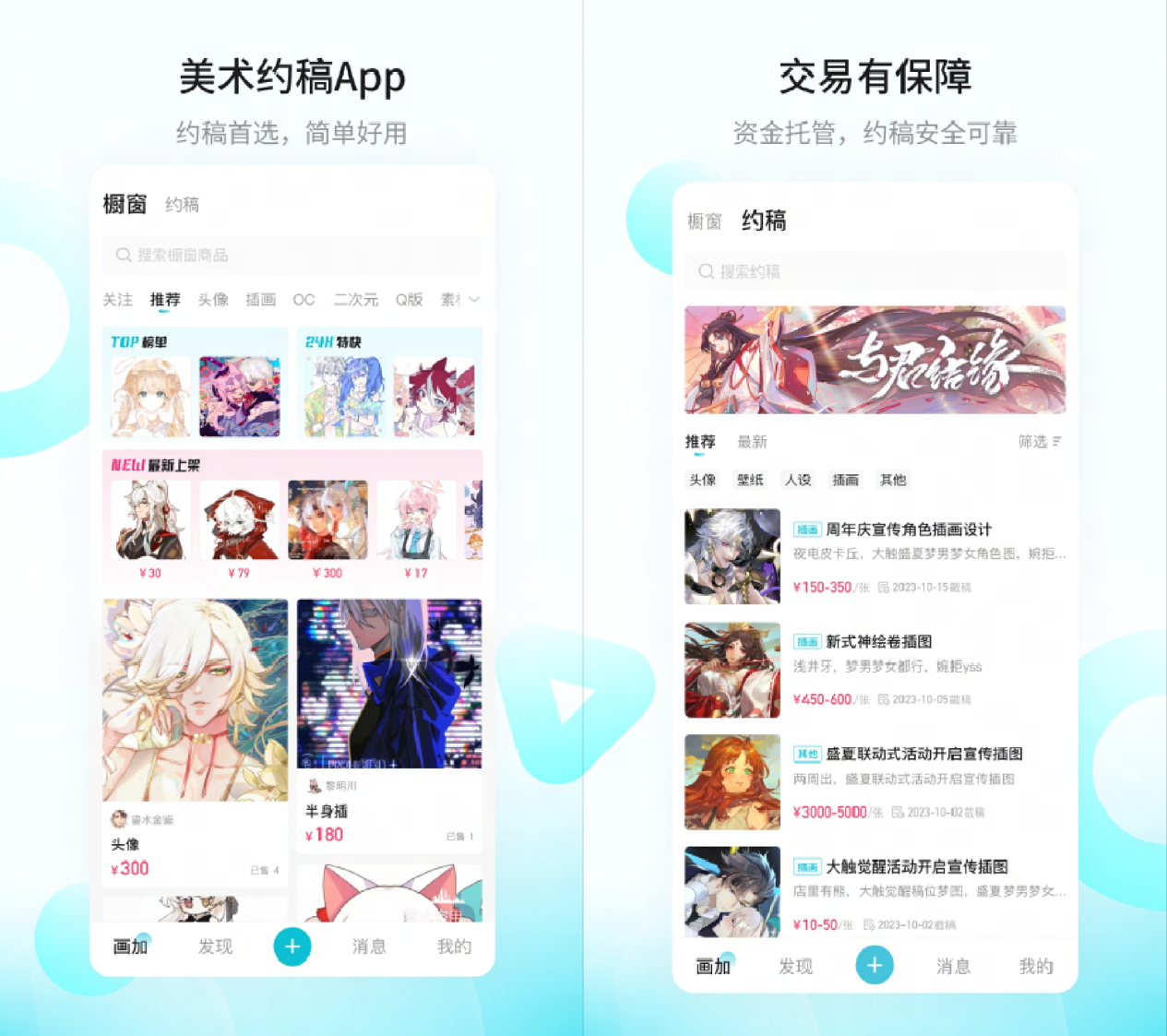 网易画加,是网易旗下一款专为美术爱好者和专业创作人士设计的约稿平台,致力于连接美术爱好者和创作者。平台集美术约稿与创作社区于一体,既为设计师、插画师、建模师等创作者提供一个展示作品、交流经验、承接约稿的空间,也具备资金担保、约稿沟通、稿件管理等功能,为买家提供一个专业安全、公开透明的美术交易环境。 传统美术约稿过程往往涉及复杂的沟通环节,双方需要花费大量时间在沟通上。而画加平台于2023年3月推出橱窗功能,端内橱窗涵盖原画、OC、Live2D、3D模型、真人转绘、文稿、LOGO、周边设计等多类别商品,多元化内容实现平台用户包罗万象、种类繁多的个性化需求。通过简化流程,让买家能够直接在平台上浏览橱窗、选择并下单,大大缩短了从需求提出到约稿完成的路径,降低了沟通成本,为双方提供了一个更加便捷、高效的合作环境,短短时间内吸引了超过20万画师入驻。 画加平台特色 (1)橱窗交易,便捷好用 买家可以在画加平台快捷查看数十种美术产品分类,进入喜欢的商品橱窗,点击「立即购买」完成支付,即可开始与创作者开始沟通定制需求。这种交易方式简单快捷,大大提高了交易效率。 (2)网易担保,安全约稿 画加平台提供资金托管服务,确保交易过程中的资金安全。交易过程中,创作者将按节点进度提交稿件,买家分阶段确认进度,当交易结束,创作者才会获得已确认节点对应的稿酬,有效保障交易资金安全。同时在交易过程里,创作者上传的稿件将自带水印,防止出现盗图跑单的情况。 (3)画师聚集地,约稿又快又好 画加平台汇聚超过20万名美术创作者,多样化的约稿橱窗涵盖原画、OC、Live2D、3D模型、真人转绘、文稿、LOGO、周边设计等多类别商品,可满足买家个性化的约稿需求。内嵌筛选功能,方便买家快速找到感兴趣的内容进行购买。 (4)多样化支付,提供购买方便 画加平台支持多种支付方式,包括微信、支付宝、银行卡等,为买家提供更多的支付选择,购买过程更加便利。 画加使用流程 首先需要在应用商店下载画加APP,注册并登录账号进行验证,即可进入画加平台首页,浏览不同频道内各类商品橱窗,挑选符合需求的商品下单。 (1)发现合适的橱窗 通过「频道」功能,迅速前往意向频道选择合适的橱窗;内嵌「筛选」功能,可以通过时间、价格、偏好等因素进行进一步的分类筛选,快速检索符合需求的橱窗。 (2)找到特定的画师 可以通过「发现」直接搜索特定的创作者,进入对方主页查看在售或待售的橱窗,并进行挑选和下单。 (3)确认订单,开启合作 在选择好合适的橱窗后,买家可以下单付款并开始与创作者沟通具体的定制需求。可以事先设置「我的设定」,创建专属人设卡,交易沟通过程中一键发送设定信息;在交易过程中,可以在平台上与创作者进行即时的沟通交流,商量交稿日期、发送相关参考例图等,以便推动合作顺利展开。 画加平台合作 作为网易旗下的专业美术约稿平台,画加在运营期间不断积累好口碑,不仅吸引了海量美术创作者的加入,更与诸多知名游戏动漫IP建立密切合作,如阴阳师、决战平安京、梦幻西游、一梦江湖等知名游戏IP。更有多样的平台联动合作计划,阴阳师百绘罗衣式神皮肤设计大赛、阴阳师百闻牌异画设计大赛等活动,曾多次交由画加平台承办,产出海量优质的同人作品。 结语 画加平台为创作者提供了广泛的曝光机会、便捷的约稿流程、安全的交易保障、多样化的创作类别、开放的创作社区支持,截至目前已经吸引了超过20万名创作者入驻。也因为画加平台有着丰富的创作者资源、多类别的商品橱窗、透明安全的交易流程,使得众多买家选择画加作为美术约稿的首选平台。随着平台的不断发展和完善,画加平台有望成为美术约稿行业的重要推动者和创新者。 |