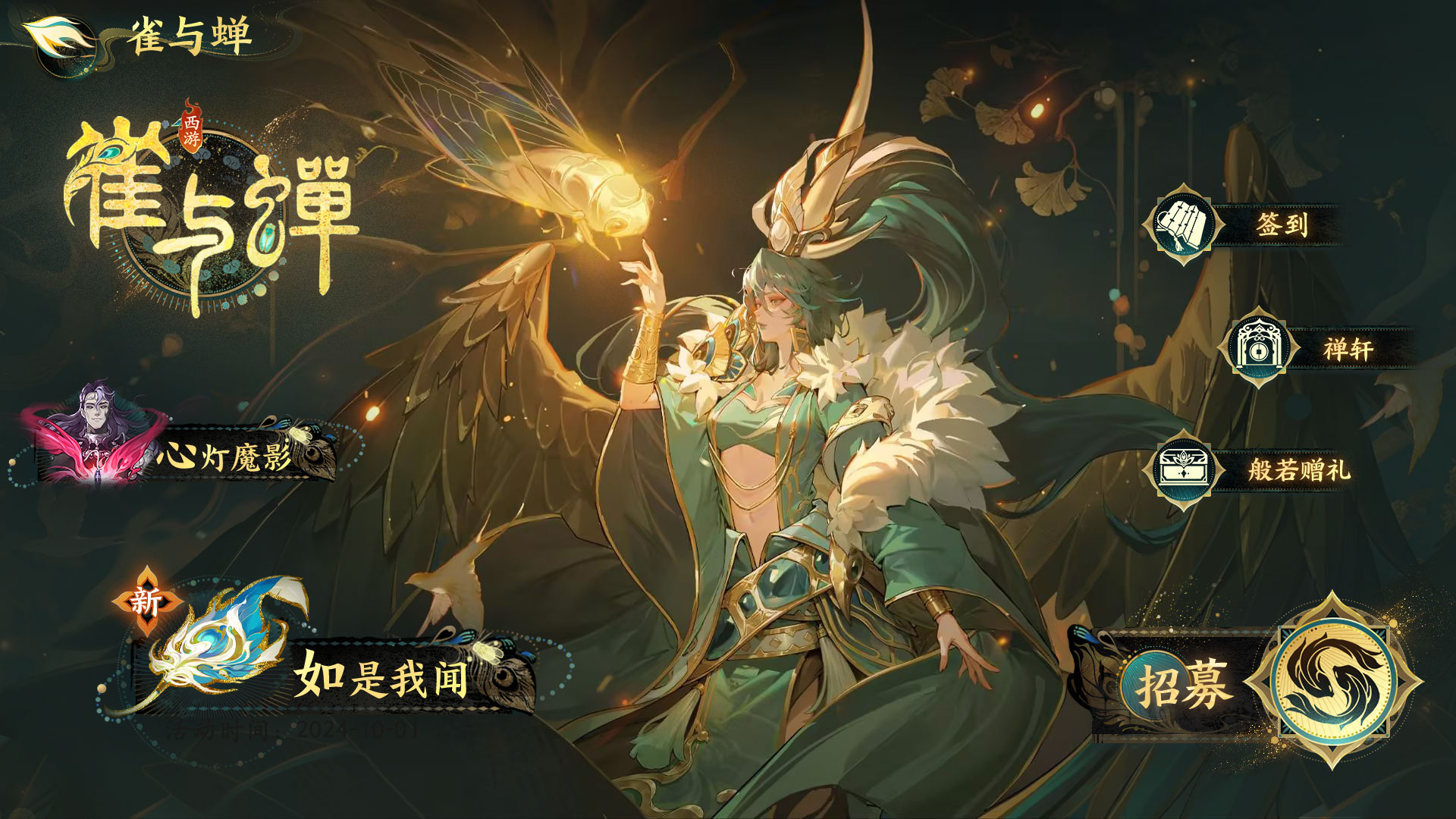 1.3(上)新版本「雀与蝉」开启,新角色「孔雀大明王」现已登场。 新版本现已上线 「雀与蝉」主题活动现已开启,活动期间将开放「如是我闻」、「心灯魔影」、「梵海涟漪」、「禅轩」、「般若赠礼」等剧情及活动关卡,完成即可兑换丰富的活动奖励。通过对该版本的不断深入,书灵们将对这位爱憎分明的新角色「孔雀大明王」有更多的了解~其他新版本精彩活动,书灵们可至游戏内查看! 版本限时主题活动「雀与蝉」介绍 【活动时间】9/27 7:00 - 10/18 6:59 【解锁条件】玩家等级达到27级且通关入世4-1 新版本招募界面 「雀与蝉——如是我闻」全新限时活动关卡说明 活动期间将开放「如是我闻」剧情及战斗关卡,完成关卡可获取「逍遥」,并前往活动 商店「禅轩-奇珍」中兑换活动奖励。 「雀与蝉——心灯魔影」活动说明 活动期间内分阶段解锁2名首领,挑战首领可获得积分,根据积分可领取对应档位的奖励。可使用「如是我闻」中获得的「法印经卷」强化天赋,获得专属强化效果。 「雀与蝉——梵海涟漪」活动说明 趣味小游戏玩法,补全人物关系图可获得玄玉简、「逍遥」奖励。 「雀与蝉——禅轩」活动说明 活动期间,书灵大人可通过参与活动玩法获取「逍遥」,消耗「逍遥」以兑换「禅轩-奇珍」商店内奖励。书灵大人还可在「禅轩-豪礼」界面直接购买礼包,获取大量玄玉简、「逍遥」、「神缘晶·金蝉蜕浊」! 「雀与蝉——般若赠礼」活动说明 可领取免费奖励,付费可以解锁更多免费及付费奖励。 「雀与蝉——签到」活动说明 【主要奖励】玄玉简*10 新版本签到界面 「雀与蝉」活动角色招募 活动期间全新【绝】品秘玄角色「孔雀大明王(魔)」的出现概率将大幅提升。 ※此招募属于「活动角色招募」,与同类型招募的保底机制共享。 ※详细说明请参照相关卡池说明。 新角色孔雀大魔王 |