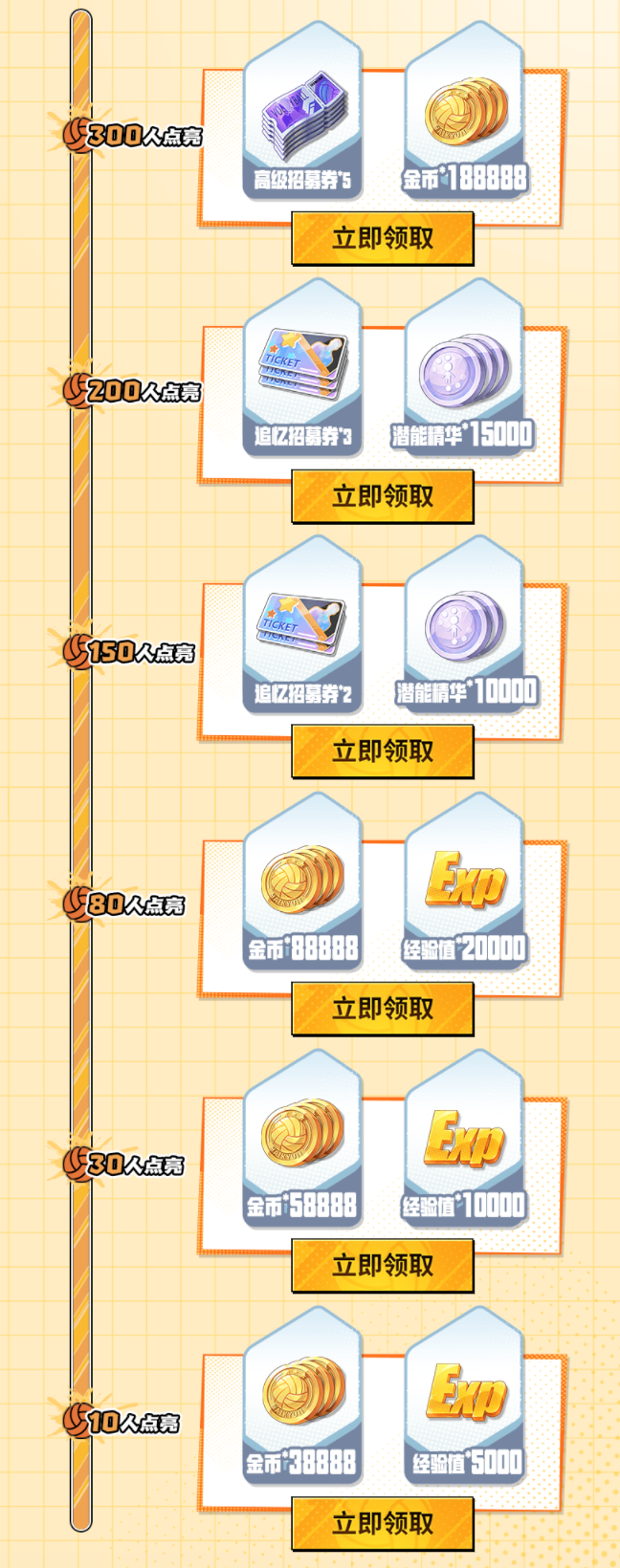 TOP:《排球少年:新的征程》10月25日公测! 888Q币心悦俱乐部下载并注册即抢,先到先得! iPhone 16 Pro心悦俱乐部下载注册且充值限时抽! 心悦专属影山头像框心悦俱乐部下载并注册即领! 心悦专属影山头像、心悦专属影山聊天框心悦俱乐部预约用户专享! 小伙伴们,TA来了,TA来了!全新动画官方授权正版排球少年手游《排球少年:新的征程》全平台公测开启,心悦君联合《排球少年:新的征程》项目组给各位小伙伴们带来了海量专属特权福利,多的拿到手软啊!各位小伙伴们,接下来心悦君就大家介绍下如何领取吧! 【心悦俱乐部下载注册,即抢888Q币】 活动期间,首次下载并注册《排球少年:新的征程》在心悦俱乐部完成的玩家可领取,最高赢888Q币。 【心悦俱乐部下载注册,再领专属礼包】 活动期间,首次下载并注册《排球少年:新的征程》在心悦俱乐部完成的玩家可领取一份对应心悦等级礼包。 (由于篇幅有限,此处仅展示心悦V5会员权益) 【心悦俱乐部下载注册,还领注册加成礼包】 活动期间,首次下载并注册《排球少年:新的征程》在心悦俱乐部完成的玩家,可领取一份注册加成礼包,心悦专属头像框轻松拿! 【心悦俱乐部下载注册,充值抽iPhone】 活动期间,首次下载并注册《排球少年:新的征程》在心悦俱乐部完成的玩家,每充值50元人民币即可开启1次礼盒,开启礼盒有机会获得iPhone16 Pro、Q币等豪礼! 【心悦俱乐部下载注册,天天登录有礼】 活动期间,首次下载并注册《排球少年:新的征程》在心悦俱乐部完成的玩家,游戏登录并在活动页面签到达到指定天数,即可领取登录好礼。 【心悦俱乐部下载注册,升级赢高级招募券】 活动期间,首次下载并注册《排球少年:新的征程》在心悦俱乐部完成的玩家,游戏内达到指定等级,即可领取专属等级礼包。 【心悦俱乐部预约,赢专属头像、聊天框】 活动期间,首次下载并注册《排球少年:新的征程》在心悦俱乐部完成的玩家,如在心悦俱乐部预约《排球少年:新的征程》成功,即可获得专属预约礼包1份(内含心悦专属头像、聊天框)!" 【定档奖励领取,Q版透卡套装限时抽】 仅限心悦俱乐部参与《排球少年:新的征程》定档活动的玩家领取对应已获得的奖励,有机会获得Q版透卡套装限时抽哦~ 【俱乐部专属下载礼】 活动期间,绑定排球少年俱乐部,在心悦俱乐部首次下载并注册《排球少年:新的征程》的玩家可领取,阵容教练服务、经验值*10000,金币*100000,阵容教练可以在俱乐部内联系社团顾问提供,帮您养成角色不走弯路~ 【成员邀请礼】 邀请新用户首次在心悦俱乐部下载注册《排球少年:新的征程》,且邀请的好友回到本活动页面领取下载礼包,则邀请人可以获得最高18Q币和高级招募券*3,追忆招募券*2。 【社团招新季!加入俱乐部领道具】 仅限心悦俱乐部参与《排球少年:新的征程》社团招新活动的玩家领取对应已获得的抽奖奖励和俱乐部规模礼包,奖池包括HUAWEI PURA 70、京东卡、高级招募券等哦~ 【为球员应援,榜一透卡带回家】 仅限心悦俱乐部参与《排球少年:新的征程》球队应援活动的玩家领取对应已获得的抽奖奖励和各学校应援奖励,奖池包括288Q币、乌野全员亚克力立牌、双人羁绊马口铁徽章套装、Q版透卡套装哦~ 【俱乐部成员集结排行榜】 俱乐部成员在心悦渠道首次下载《排球少年:新的征程》并注册,俱乐部达到指定人数可以解锁全员礼,游戏道具可叠加,最高可领取高级招募券*5,追忆招募券*5,潜能精华*25000,金币*37.5万,经验值3.5万,养成角色先人一步! 【创始人专属礼】 俱乐部成员在心悦渠道首次下载《排球少年:新的征程》并注册,达到指定人数可以解锁创始人激励,游戏道具可叠加,现金奖励仅领取最高档。最高可以领取1888元现金红包和高级招募券*28。 【俱乐部星光点亮排行榜】 俱乐部成员在心悦渠道首次下载并注册,可以为俱乐部增加星光点亮人数,活动结束后,登上俱乐部星光点亮排行榜的俱乐部可以获得对应的现金奖励,最高可以活动2000元现金~ ?TOP级社团冲榜? 截止11月3日,若入驻的俱乐部游戏内社团排行榜中TOP50以内的社团,还可以额外享受最高3888元的社团经费! 小伙伴们,让我们一起来加入《排球少年:新的征程》吧! 更多关于《排球少年:新的征程》的相关资讯,敬请关注心悦俱乐部App-《排球少年:新的征程》专区! |