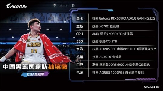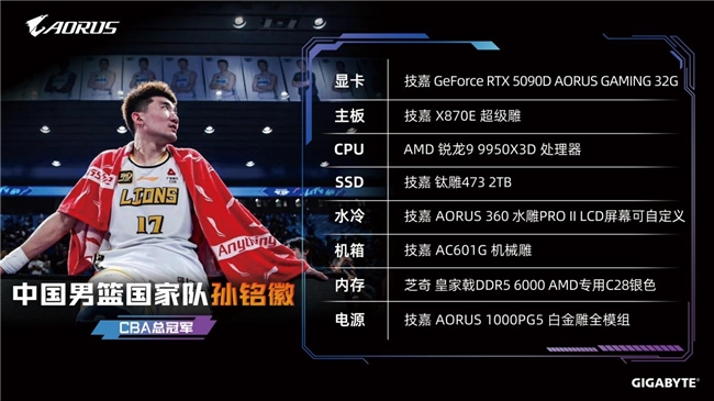 近日,技嘉AORUS星推官知名电竞主播CSGO茄子带着一份特别的礼物,敲开了CBA总冠军球员孙铭徽的家门。这份礼物是茄子联合技嘉为孙铭徽提供的一台电竞主机。此次跨界互动,不仅传递出“电子竞技与传统体育本是一家”的鲜明信号,也标志着电竞文化与体育精神再一次热情相融、彼此激荡。 作为2024-25赛季CBA总冠军、国内球员最佳阵容成员及最佳防守球员,孙铭徽的篮球生涯满载荣誉。赛场之外,他也是一位资深电竞爱好者,常与CSGO茄子、知名汽车达人@八戒说车 组队开黑,在《绝地求生》等热门游戏中并肩作战。 此次赠送的电竞整机配置堪称豪华:搭载AMD锐龙9 9950X3D处理器、技嘉X870E AORUS MASTER超级雕主板以及技嘉GeForce RTX 5090D AORUS GAMING 魔鹰32G显卡。技嘉主板拥有D5黑科技2.0在无需改动内存频率和时序情况下能一键优化内存性能,提高帧率稳定性能,作为前职业电竞选手亲测有效,提供流畅极致的电竞体验。 此次联动并非技嘉首次跨界体育圈。此前,技嘉曾为NBA总冠军、奥运会金牌得主贾维尔·麦基(JaVale McGee)打造专属定制主机,持续推动电竞文化与体育精神的全球融合。从职业赛场到电竞战场,技嘉始终以创新科技助力每一位追求极致的竞技者,并与中国玩家一道,共同见证并参与中国电竞事业的蓬勃发展。 |