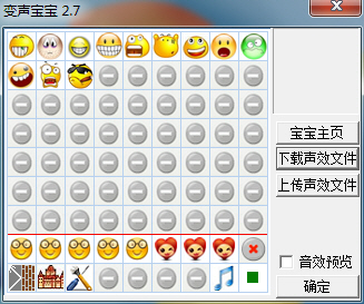 3.网游也娱乐:变声宝宝(YY变声器) 软件简介:这是一个很有意思的变声工具,可实时对声音进行处理,自带有多种男女声转换特效;完全兼容一般的聊天室和网络电话。软件界面如图5所示。 变声宝宝软件界面 基本使用:软件界面比较简洁,操作起来也非常方便。点击你想要变声的效果,即可实时地把你的声音变成男声、女声或童声,如图6所示。而且,在聊天的同时还可播放指定的背景音乐或歌曲。当然,软件也能支持对话过程中的录音。
