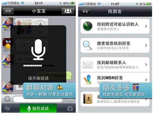 5、《米聊》 入选理由:八卦乃生活的调味料 手机聊天嘛,大家都会想到QQ啦,MSN啦。八过,这些都要戳键盘,《米聊》作为一款手机社交软件,与朋友聊天、玩对讲、发靓照片这是必须的。小编最感兴趣的还是语音群聊,好友聚在一起七嘴八舌的聊天、八卦岂不更开心?发短信不花钱,发语音不花钱,还可以向探测仪一样寻找附近志趣相投的朋友,一瞬间似乎人与人又亲近了许多不是吗?有事没事,来,米我一下! 6、《天籁听书》 入选理由:夜深人静最适合讲故事 小时候常常听老爸老妈给讲故事,如今天天各种忙,各种累,总想什么时候能不用眼睛读书就好了。当然不是问题,现在各种琳琅满目的有声读物随处可见。不过要数内容最广泛、最新还是当属《天籁听书》。有热门的小说连载,国学诗词,还有评书相声,应有尽有,想听穿越剧、悬疑剧,还是想听相声解解闷,还不是都听你的。 身为iPhone潮人,那可是要玩得了小清新,咽得下重口味;穿得了水手服,舞得了小皮鞭的。区区冬眠的日子怎么能难倒我们呢?希望大家能够喜欢小编挑选的这些游戏和应用,虽然他们不一定很精美,但都小有个性,在寒冷的冬日我们也要HIGH得与众不同。 [编辑:明白夏季后] |