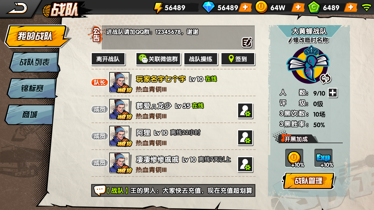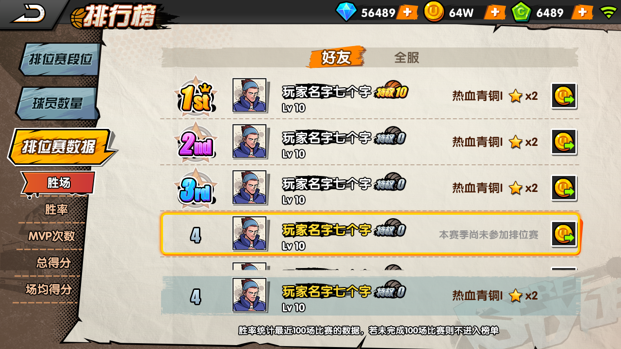 《街头篮球》手游是由端游开发商授权、腾讯掌趣双核运营打造,是目前国内手游市场中仅有的一款拥有街头篮球纯正血统的经典手游。游戏还原了端游张扬不羁的美式嘻哈画风,并在游戏性上再度升级,将自由开放的3V3竞技完美移植至移动端,随时随地指尖斗牛! 实力操作,公平刺激!绝杀只在一瞬间! 游戏玩法: 操控按键: 《街头篮球》手游操控简单,非常容易上手,通过屏幕左侧摇杆控制方向,右侧三个按键来完成进攻时的投/扣篮、传球、突破,以及防守时的篮板、盯防、抢断。 比赛规则: 玩家控制单个角色与其他5个玩家完成3V3的比赛对抗,单局比赛时长3分钟。比赛开始时由双方队伍中的最高球员跳球争球开场,当一方队伍得分后,则换由另一方在三分线外发球。每轮进攻时长14秒,14秒钟必须出手并且篮球必须碰到篮筐,否则违例,违例将交换球权至对方。游戏中也有对二次运球的限制,运球后再持球,则无法移动,只能选择传球或者投球。另外,每轮攻防中,防守方争夺到球权后必须将球运出三分线外或者将球传至三分线外的队友,才视为攻防转换成立。最终的胜负以时间走完时的比分为准,如果出现平分,则进入加时赛,加时赛中,率先得分的队伍获胜。 团队配合: 入门虽易,但要进阶到真正的高手层次,则需要的是意识!意识,是一切电子竞技游戏的基础。在游戏中,不仅需要个人的操控能力,也依赖与队友之间的默契配合!如何风骚的跑出空位,如何利用挡拆为队友创造出手机会,如何华丽突破吸引包夹后分球,都依赖于意识。团队的默契、团队的战术需要你和好友不断地打磨。直到对手发出无奈的感慨“NND,都是套路” 对战模式: 完美还原端游经典的1v1、2v2、3v3对战模式,玩家可以联网快速随机匹配开局,也可以开房间自由选择队友开局匹配。 排位赛: 《街头篮球》核心玩法3v3的排位竞技场,排位赛拥有多个段位,通过不断的胜利一步步往上进阶,在高段位上,输球也会导致段位回退。而在一个周期轮回后,玩家将会获得最终所处段位的对应奖励。 挑战赛: 与之前一个玩家控制单个游戏角色不同,挑战赛提供不同玩法体验,由一个玩家控制3个游戏角色,去和另一个玩家对抗。挑战赛和排位赛一样,最终以段位来获得相应奖励。挑战赛需要玩家对不同位置都有一定熟悉度,考验玩家的全面性和连携操控性。 单人模式: 游戏设置了丰富的关卡,随着关卡深入,难度也将深入,除了和NPC对抗外,不同关卡还设置了许多丰富的篮球小游戏。过关奖励也会和过关成绩相关,3星奖励才是最好的。 娱乐玩法: 除了传统的街球模式外,游戏还引入更多趣闻玩法,例如技巧赛、抢地盘、飞人大赛等等创新玩法,大大增强了游戏的玩法深度。 斗牛模式 ?两人之间的篮球比赛,一方得分后重新开球,仍然是得分方持球.无比赛时限,先得分3分的一方获胜 板爷 两人一起抢篮板的小玩法,抢到得分,1分钟时间结束时得分高者胜 请你吃火锅 npc上篮或扣篮,玩家的小玩法,盖中得分,1分钟时间结束时,达到指定得分获胜 我的地盘 ?玩家持球在球场各个区域中投篮,进球则拥有该区域,在对方拥有的区域中投篮,进球则使该区域变为无人区域,1分钟时间结束时,区域多的一方获胜 飙分王 ?场上随机刷新一个点,角色前往踩点,踩到后再随机刷新下一个点;角色每踩3个点得篮球一个;角色投中得3分,未命中不得分;1分钟时间结束时,得分高的一方获胜 争分夺秒 ?两人抢夺捡起场上篮球进行投篮,投篮命中后得分,球场不断刷新篮球,1分钟时间结束时,得分高的一方胜利 成长规划 前期通过新秀试炼,日常任务等玩法,合理设置玩家短期目标,引导玩家快速熟悉比赛操作,解游戏内容;后期的成就和成长引导,提供中长期目标,保证玩家在享受比赛的同时拥有自己的追求方向 聊天系统 玩家通过聊天系统可以在游戏内和好友,战队,队伍和其他玩家方便的交流,帮助玩家建立游戏内社交关系 战队系统 我们通过更灵活的战队系统,促成玩家形成稳定的游戏内小群体,提供集体目标,维系群体关系;加入战队的玩家可以更方便的比赛组队机制,同时可以利用渠道好友关系在游戏内建立强社交圈子 特权体系 特效系统根据玩家的充值额度提供多项福利,包括签到特权,特权专属礼包和特权专属头像框,彰显特殊身份 排行榜 通过排行榜提供成就排行和技术统计排行,强化玩家的荣誉和成就,玩家可以和好友或者服务器其他玩家对比包括段位,球员数量 ,以及玩家排位赛各种行为技术统计的各项数据 职业介绍 中锋:主防; 抢篮板,防守突破进来的和对位球员,为自己球员卡位和挡拆。使用背打、勾手进行进攻 大前锋:主攻; 高效得分,抢板。命中率要求比较高。使用背打,中投进行进攻 小前锋锋:主攻; 最全面。最主要的功能是大量拿分。命中率要求不是太高。使用突破、背打、中投进行进攻 得分后卫:主攻; 和小前锋有些类似,但是位子上更靠外,使用中远投、突破 控球后卫:主防; 防止快攻,串联球队,站在最靠外的位子,视野最宏观,掌控全局使用:突破和传球。 游戏特色: 【继承经典,融合创新】10年,一个时代,当经典的角色再次踏上熟悉的球场时,所有老街球迷势必将热泪盈眶!而当嘻哈动感音乐响起时,新玩家势必将热血沸腾,挥洒酷炫球技!【精美画面冲击,嘻哈音乐享受】精美的休闲卡通式画风,配上动感嘻哈的音乐,享受驾驭篮球街头漫步的体