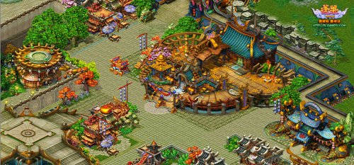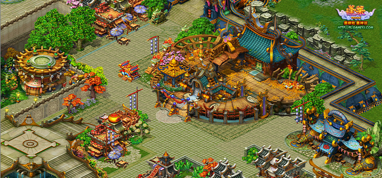 同时,天瑞城也是目前2D网游史上最大的主城。按照游戏人物与现实人物进行1:1的比对的话,天瑞城的总体面积达到了惊人的126平方公里,相当于三分之一的深圳特区大小。也难怪乎《蓬莱》的策划们一直在考虑要不要在天瑞城里单独加入轿子、马车等交通工具了。 天瑞城局部远景 《蓬莱》内部技术测试目前已经在亿佳内部热烈的进行中,据了解,除了对主城进行了全面完善,其他诸如门派系统、副本系统、SNS社区系统、特色魂魄系统等都基本通过了严格的分拆式测试,对于广大苦苦等待《蓬莱》封测的玩家来说,这意味着从新年伊始就开始期待的首次封测很快将有定论。