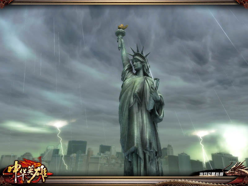 主城港都附近著名的自由女神像,华英雄与无敌在此决斗