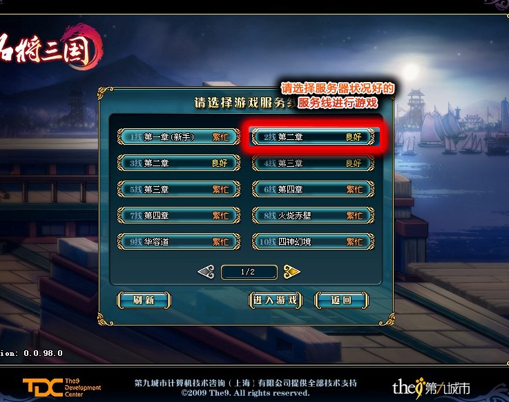登录服务器后,请选择状态最好的服务线进行游戏(各线间的数据是互通的,您可以随意选择)。