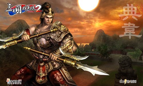 典韦:天生怪力,使得八十斤双戟,单手便可举起一般人双手也不见得支撑的住的黄牙旗。典韦与许褚二人皆以勇猛驰名, 一个是「汉之樊哙」,一个是「古之恶来」。性格忠谨的他,是曹操最为信任的贴身护卫之一,总是手持大斧立于曹操身后尽心护卫,数次奋勇死战而让曹操得以全身而退的事迹,使其护主之忠心与勇武,为后世所赞扬称颂。
