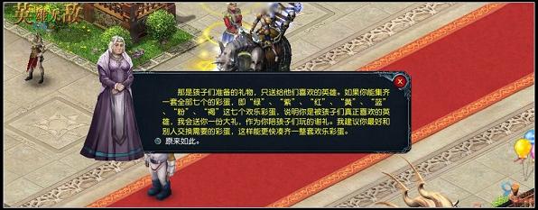 彩蛋大作战:从6月1日到6月6日,玩家只要满足了杰米、旺卡、露西、艾米丽四个人的小小愿望,就会随机获得一个欢乐彩蛋和一份神秘礼物,然后集齐绿、紫、红、黄、蓝、粉、褐七个欢乐彩蛋,就可以到费雯丽奶奶那里兑换幸运彩蛋大礼包了。