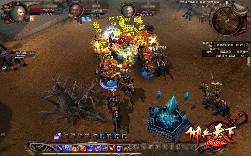 活动分为单人与团队模式,单人时守护骑士只有一名,团队时守护骑士共有五名,但都要求在限定的时间内打败蜂拥而至的怪物。团队挑战模式中,每5波怪物刷新时就会有一个首领亲自督战进攻,必须重点对付这些首领。每消灭一次首领,就有短暂的休息回复时间,这时应做好迎接下一波挑战的准备。坚持守护高塔,共需要防御25波的怪物,并消灭5名首领及其所有手下,方可取得生存挑战的胜利。单人模式时从头至尾出现的首领只有3名,所以一共15波的怪,但由于守护方只有你与一名守护骑士,相对而言难度更大。为了能够坚守到最后,在面对群怪时,应尽量使用群攻技能,如法师可以使用“暴风之地”,或兽人战士可以用“乱刃风暴”等等。这样,你将不断地看到怪物的上空飘起大片的黄色伤害数字,相信你也一定感受到,守护佣兵荣耀的自豪与成就感吧!